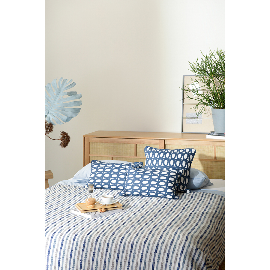 Чехол для подушки с принтом Twirl из коллекции Cuts&Pieces станет оригинальным украшением гостиной, спальни или зоны отдыха. Аксессуар органично впишется в яркий фьюжн или станет заметным акцентом в строгом минимализме. Чехол темно-синего цвета выполнен из мягкого, приятного на ощупь хлопка. Сбоку – скрытая застежка на молнии.