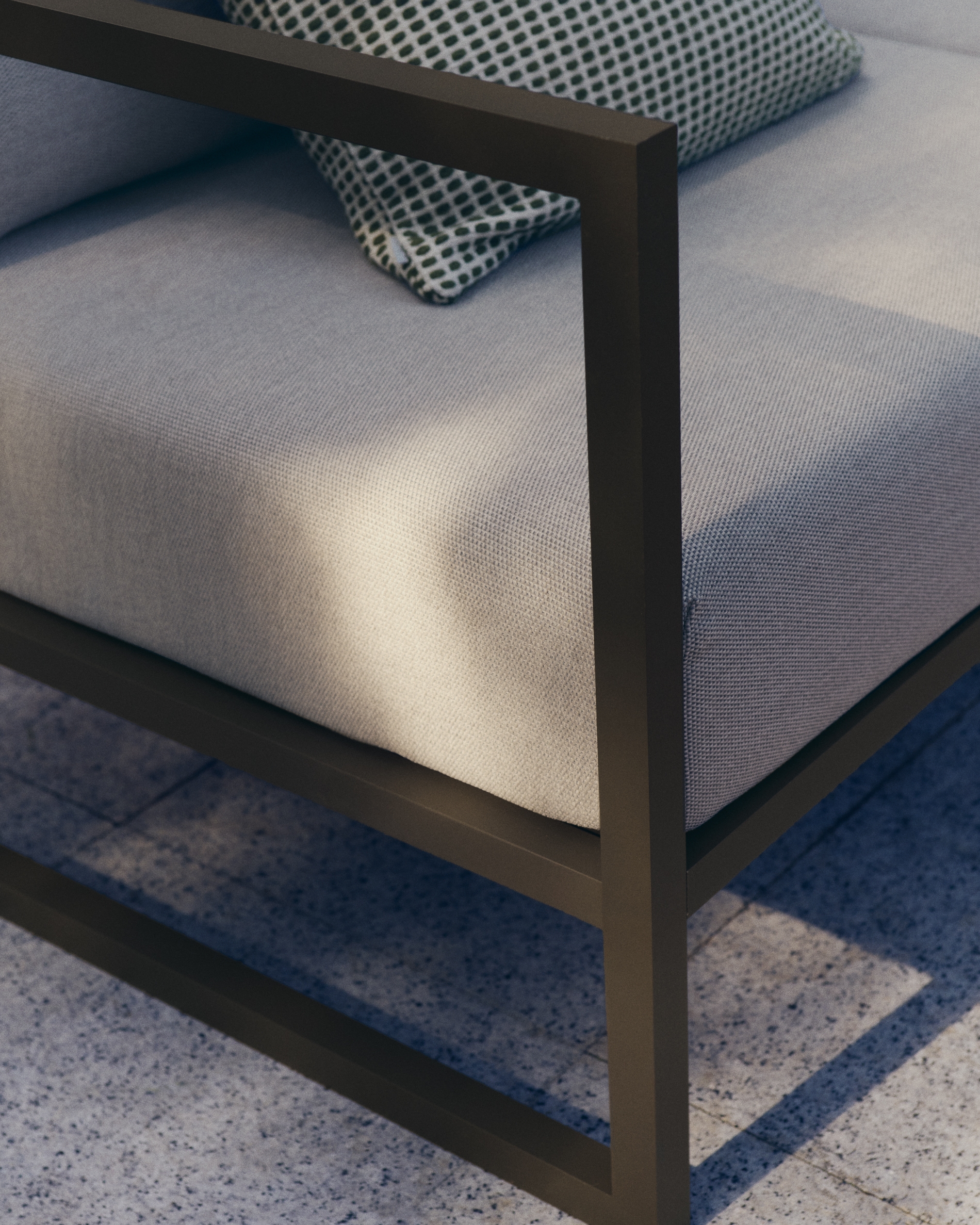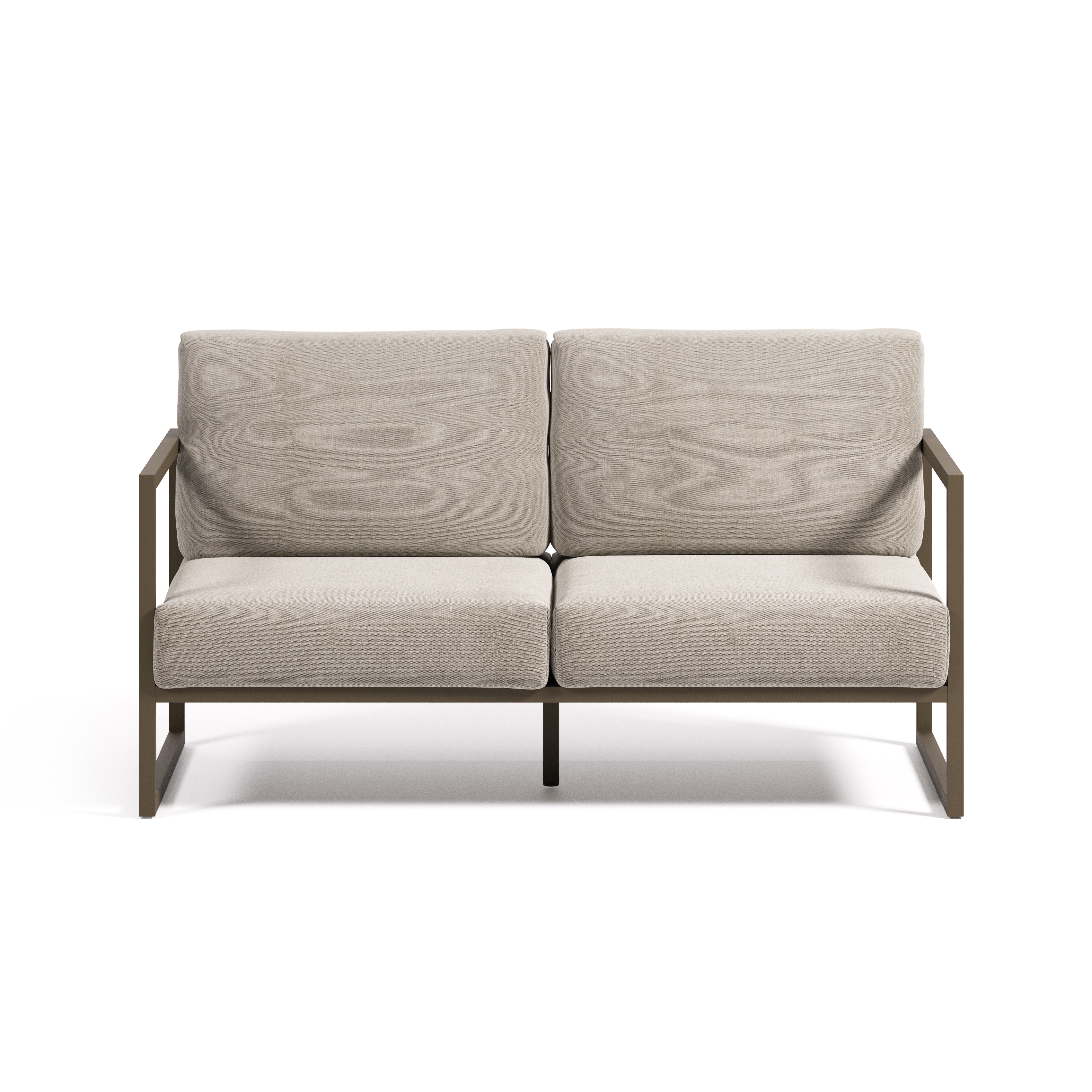 2-местный диван, подходящий для интерьеров и 100% для открытых площадок. Легкая алюминиевая конструкция, легко перерабатываемая.