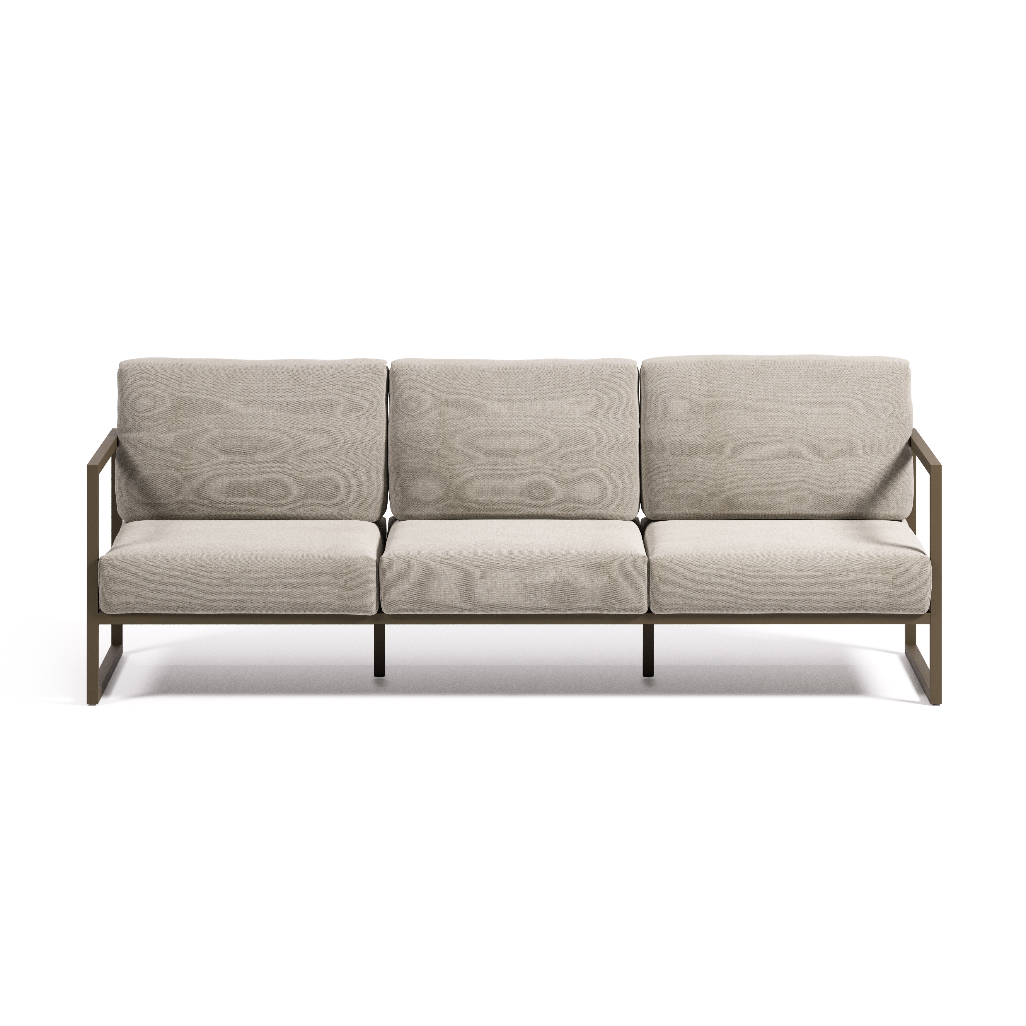 3-местный диван, подходящий для интерьеров и 100% для открытых площадок. Легкая алюминиевая конструкция, легко перерабатываемая.