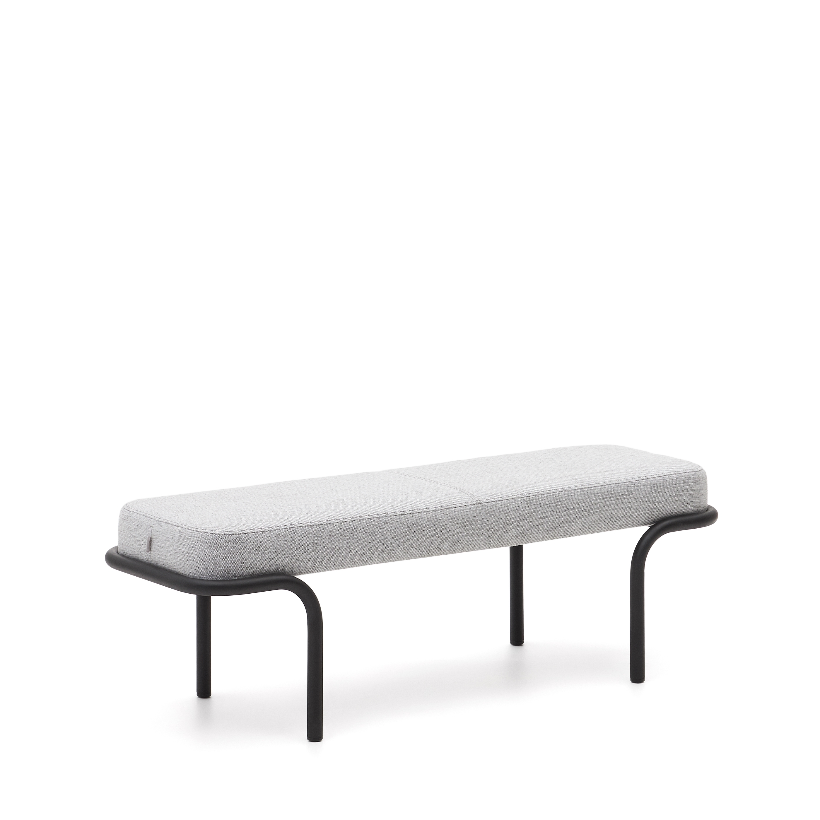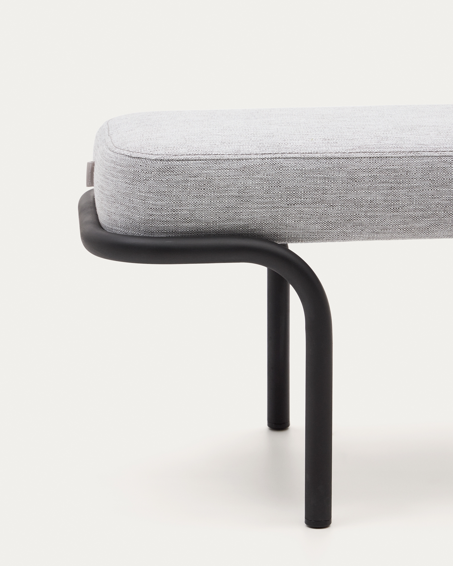 Скамья Compo от фабрики La Forma (ex Julia Grup) – адаптивный дизайн из серой ткани и черного металла.