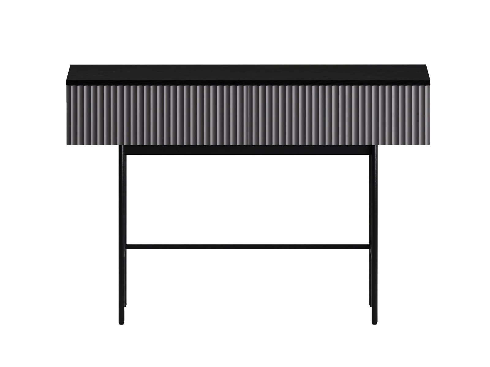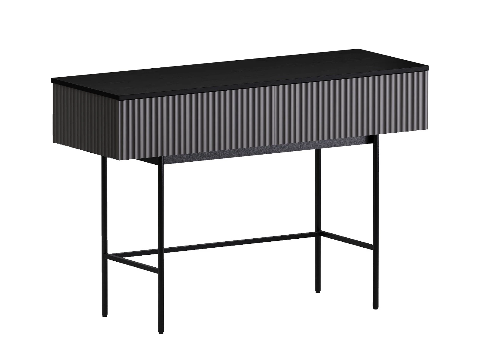Стол консольный Mikko установлен на высокое металлическое основание черного цвета, стойки которого выполнены из круглой трубы d 20 мм, верхний пояс царг аналогичен остальным изделиям, а нижний пояс из квадратной трубы 15*15 мм. В столе два ящика на скрытых направляющих. Скрытые направляющие INNER Push-open (нажал-открыл) - МакМарт. Дно ящиков – ДВПО 3,2 мм. Основание металлическое, окрашено черной эмалью, высотой 600 мм, с пластиковыми регулируемыми подпятниками. Стол консольный рекомендуется крепить к стене для защиты от опрокидывания (крепежи входят в комплект).