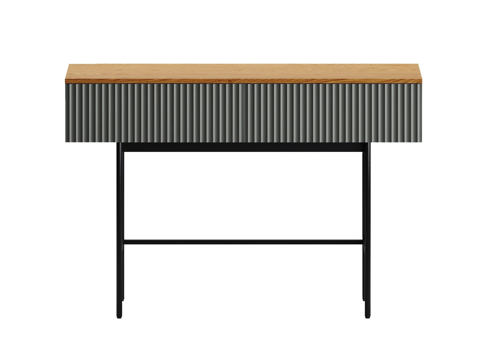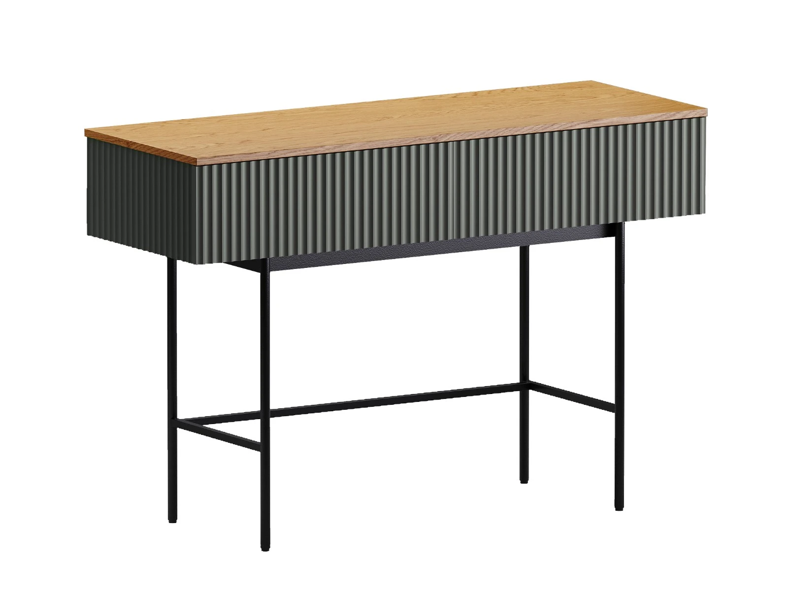Стол консольный Mikko установлен на высокое металлическое основание черного цвета, стойки которого выполнены из круглой трубы d 20 мм, верхний пояс царг аналогичен остальным изделиям, а нижний пояс из квадратной трубы 15*15 мм. В столе два ящика на скрытых направляющих. Скрытые направляющие INNER Push-open (нажал-открыл) - МакМарт. Дно ящиков – ДВПО 3,2 мм. Основание металлическое, окрашено черной эмалью, высотой 600 мм, с пластиковыми регулируемыми подпятниками. Стол консольный рекомендуется крепить к стене для защиты от опрокидывания (крепежи входят в комплект).
