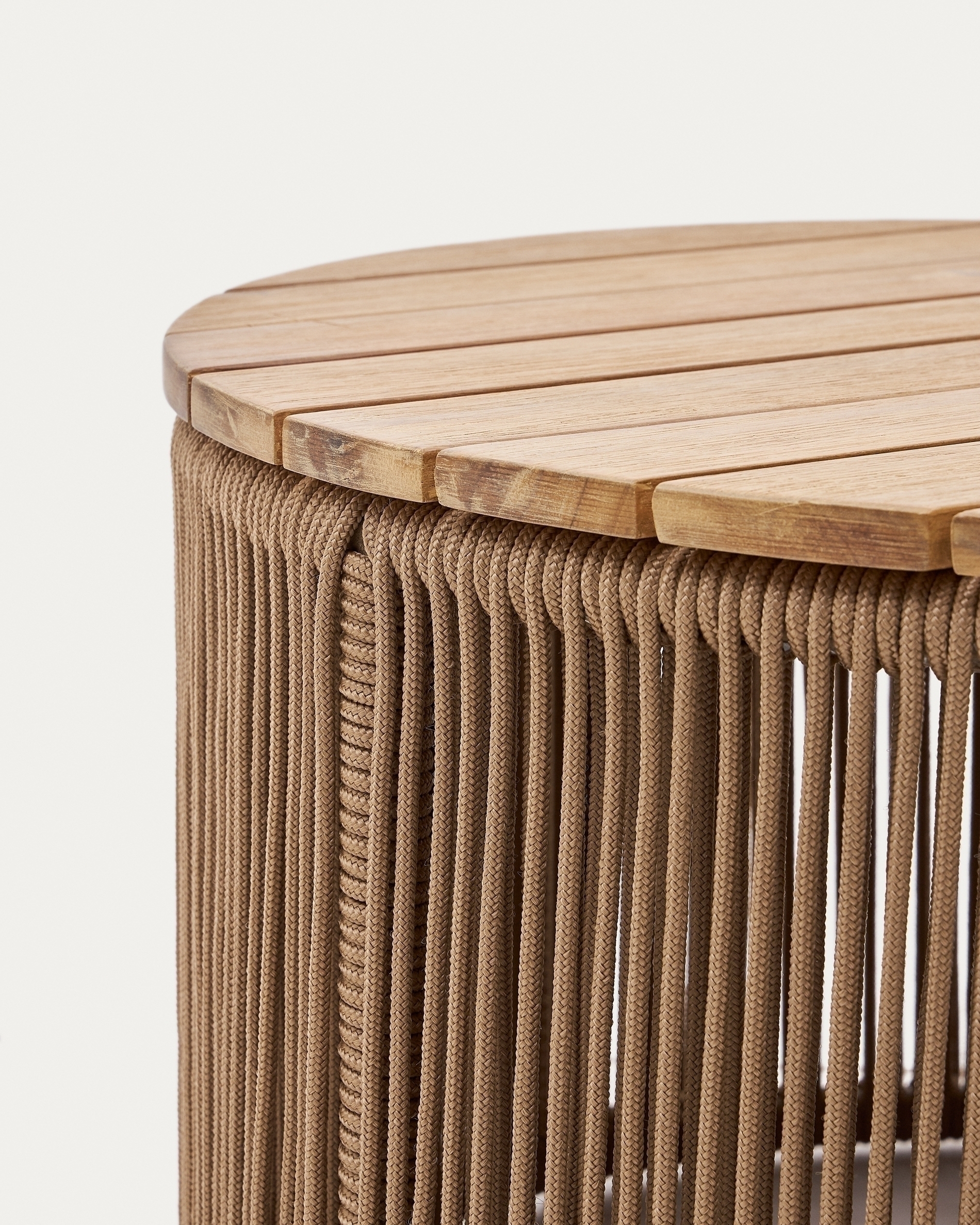 Журнальный столик Dandara добавит индивидуальность вашей террасе на открытом воздухе или в гостиной с кантри дизайном. Его структура из стали и веревки придаст особый стиль любому помещению. А контраст с деревянной столешницей добавит яркость и сделает акцент на естественность вида.