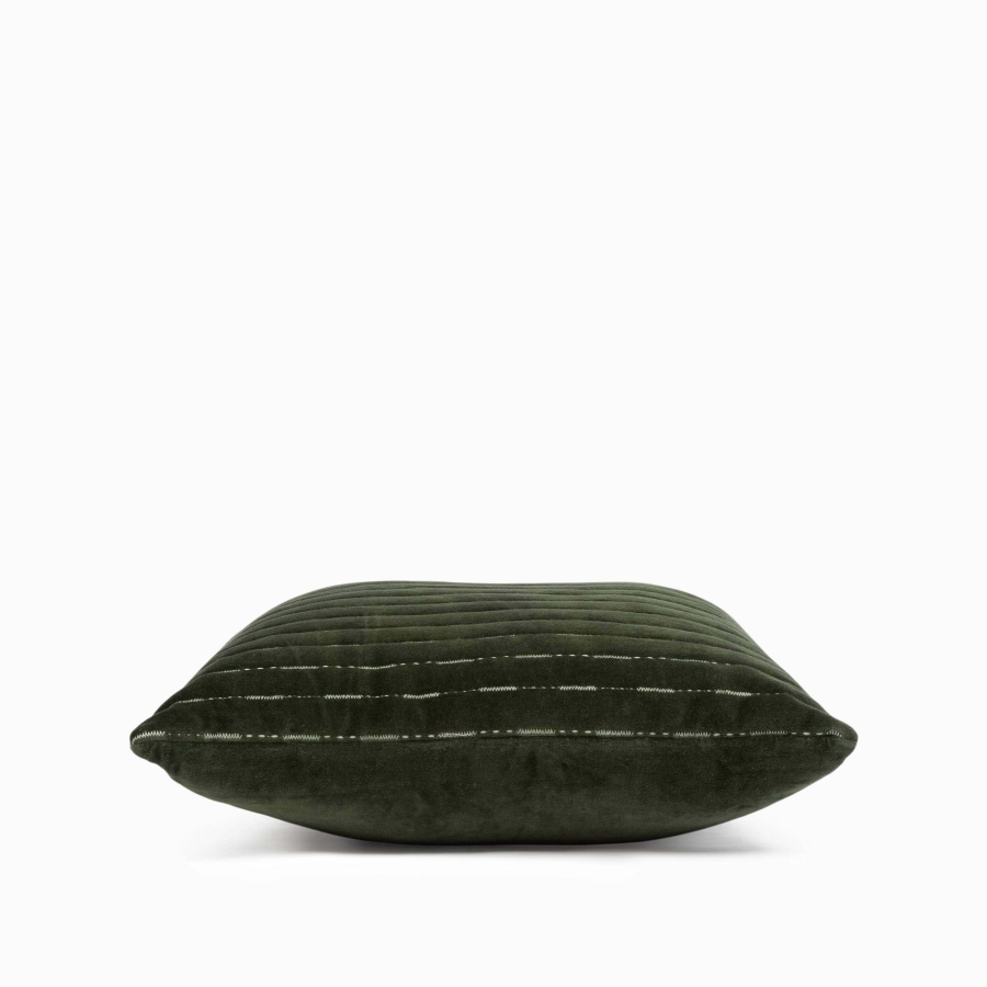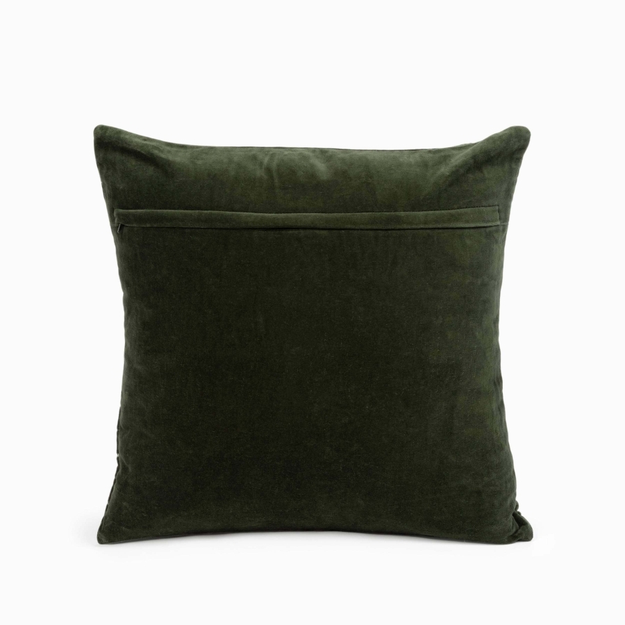 Глубокий зеленый цвет подушки создает атмосферу спокойствия и связи с природой.