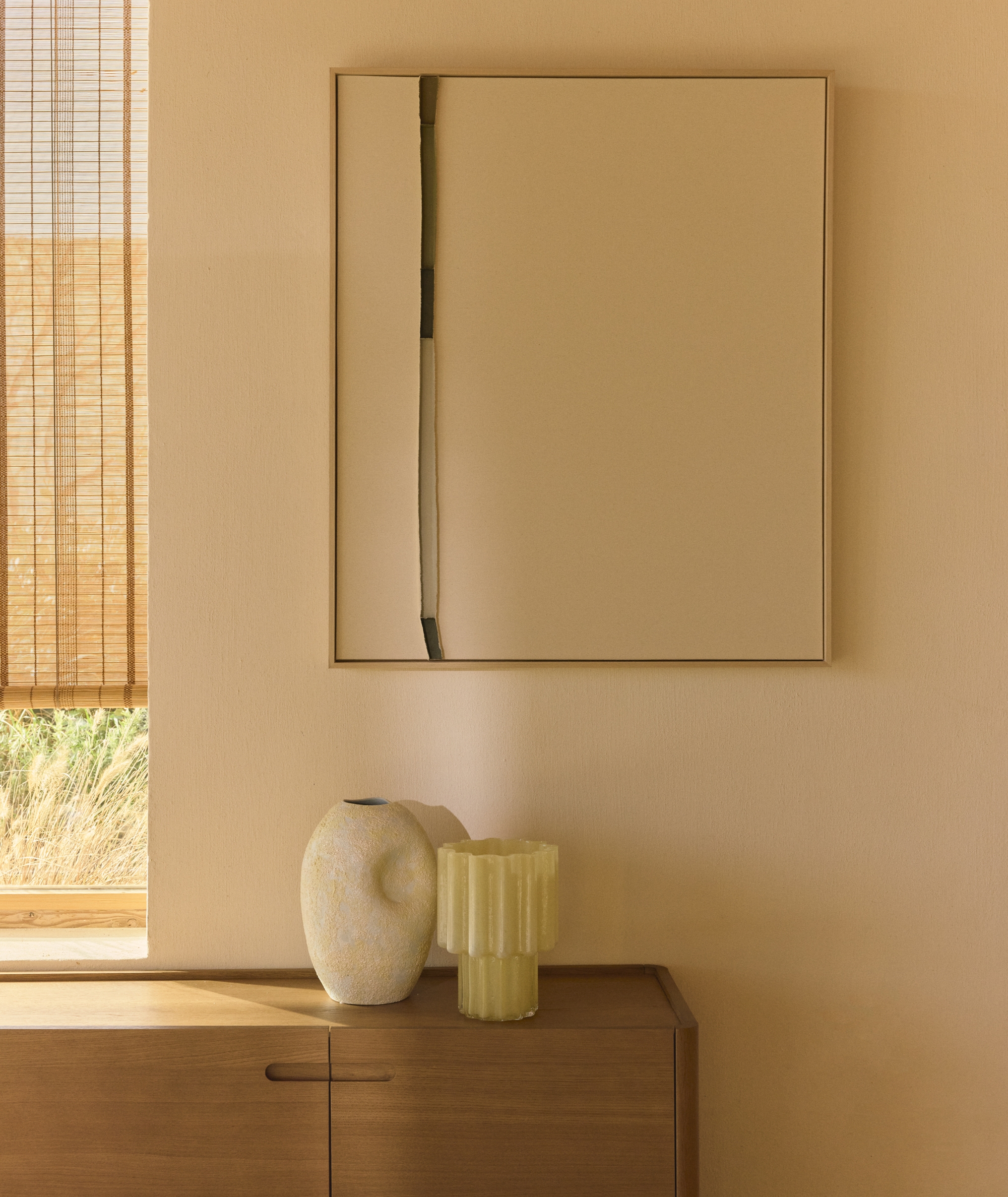 Коллекция Deravia представляет собой абстрактные картины, в которых рельефы, выполненные в технике льняной вышивки, сочетаются с палитрой мягких зеленых и нейтральных тонов, которые вводят цветовые нюансы, не нарушая баланса всей композиции, и привносят в пространство ощущение спокойствия. Каждая картина поставляется в раме с D-образным креплением, подходящим для любого типа стены.