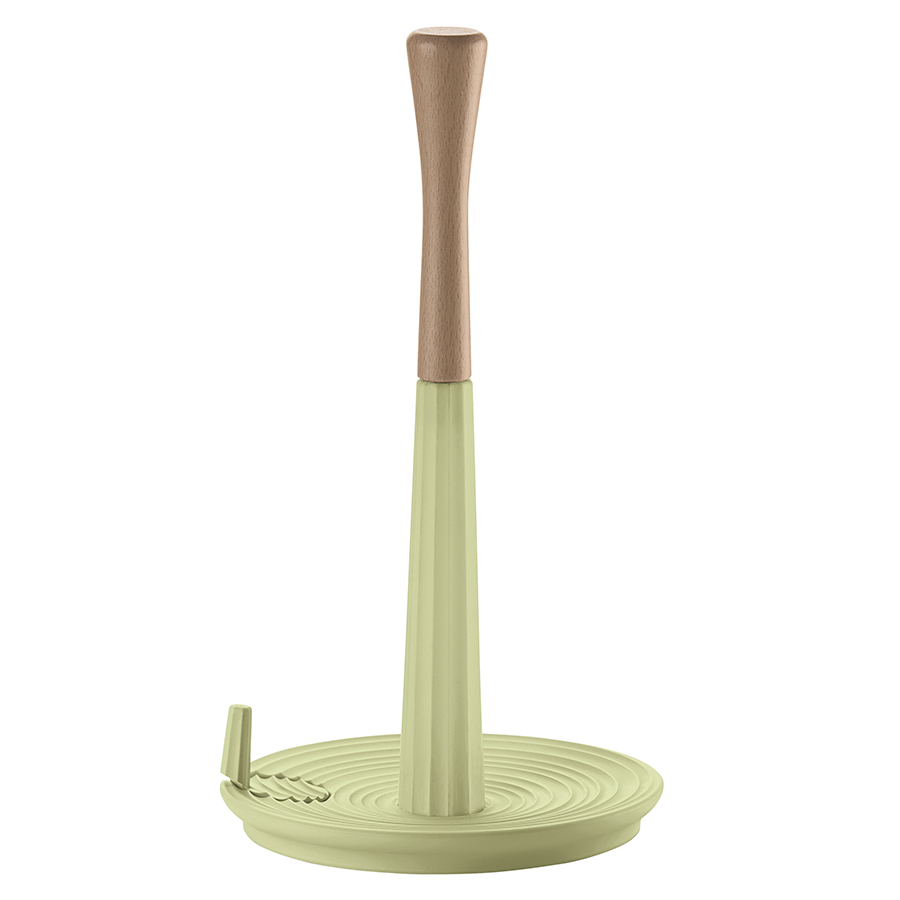 Держатель для бумажных полотенец Tierra выполнен из переработанного пластика с элементами из дерева. Материал имеет антибактериальные свойства, создавая на своей поверхности защитный барьер, препятствующий размножению бактерий. Держатель оснащен регулируемым фиксатором листа, который адаптируется под размер рулона и позволяет аккуратно оторвать кусок бумаги нужного размера. Дизайн изделия напоминает керамику, а реалистичность внешнему виду придают тщательно подобранные пастельные тона и неровные круговые узоры, создающие эффект ручной работы.