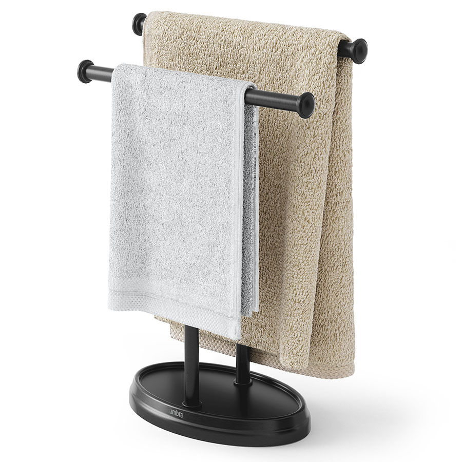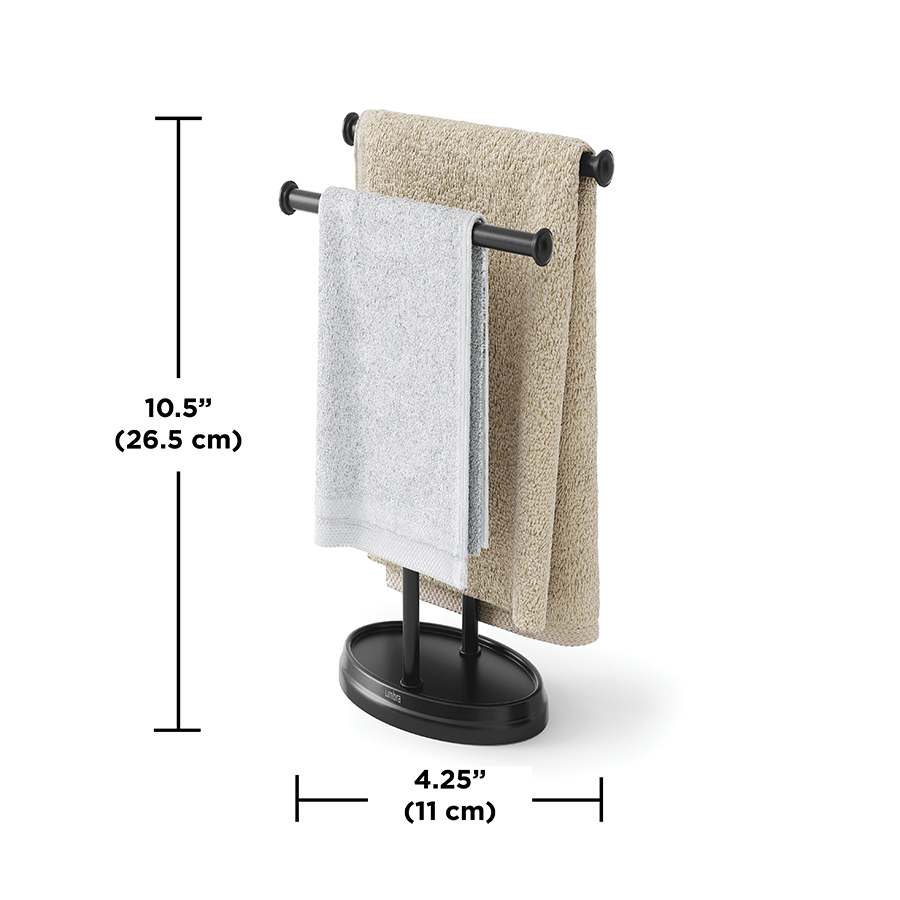 Держатель Palm имеет двойную конструкцию, что дает возможность хранить на нем одновременно два полотенца для рук в ванной комнате или на кухне. Благодаря компактным размерам аксессуар не занимает много места, а устойчивое основание позволяет размещать его на любой поверхности. Основание и функциональные элементы изделия выполнены из прочной и долговечной стали.