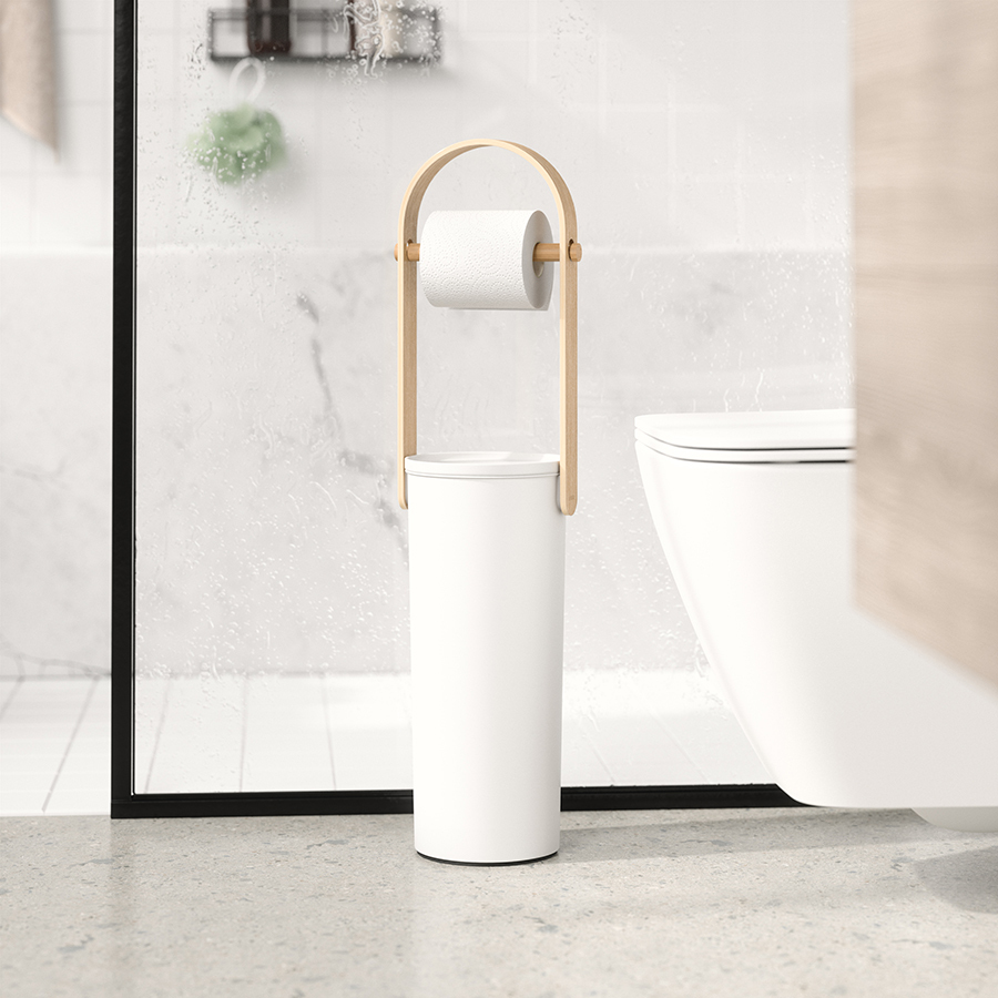 Многофункциональный держатель для туалетной бумаги Bellwood - аксессуар для тех, кто любит порядок. Компактный предмет привнесет в интерьер нотки элегантности и природного очарования. Вместительный отсек позволяет хранить до трех рулонов бумаги, гарантируя, что у вас всегда будет запасной вариант под рукой. Встроенный лоток можно использовать для телефона, ключей, растений, освежителя воздуха или чего-либо другого.