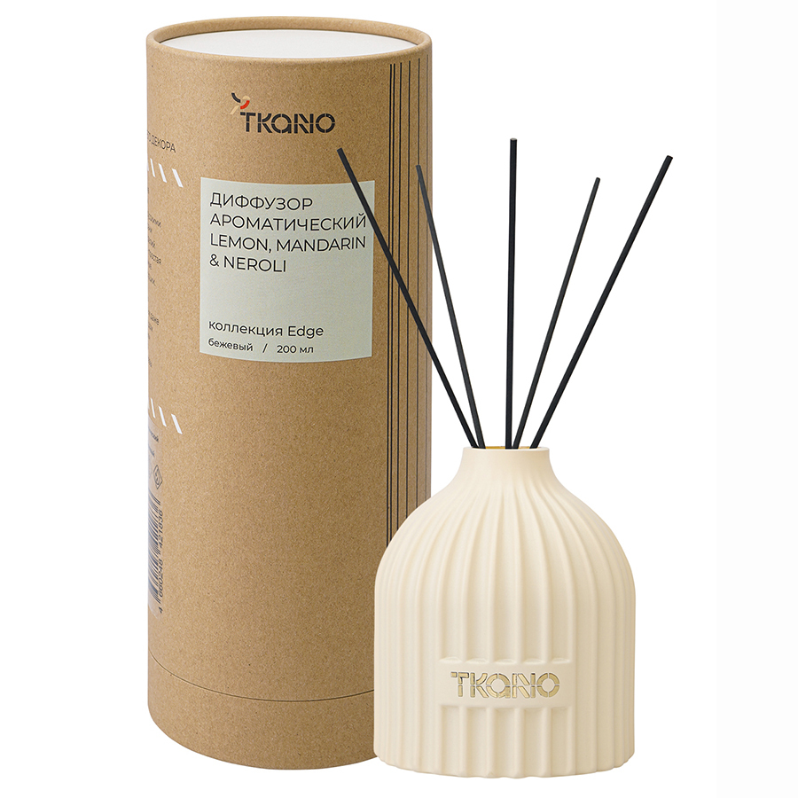 Диффузор ароматический Lemon, Mandarin & Neroli бежевого цвета из коллекции Edge с дизайном, вдохновленным русскими традициями, отлично подойдет для домашнего декора и создания в интерьере уютной, расслабляющей атмосферы. Фактурные грани и округлая поверхность стеклянного флакона отсылают нас к образу купола – символу духовного подъема и стремления к совершенству. В комплект входят 10 фибровых палочек.