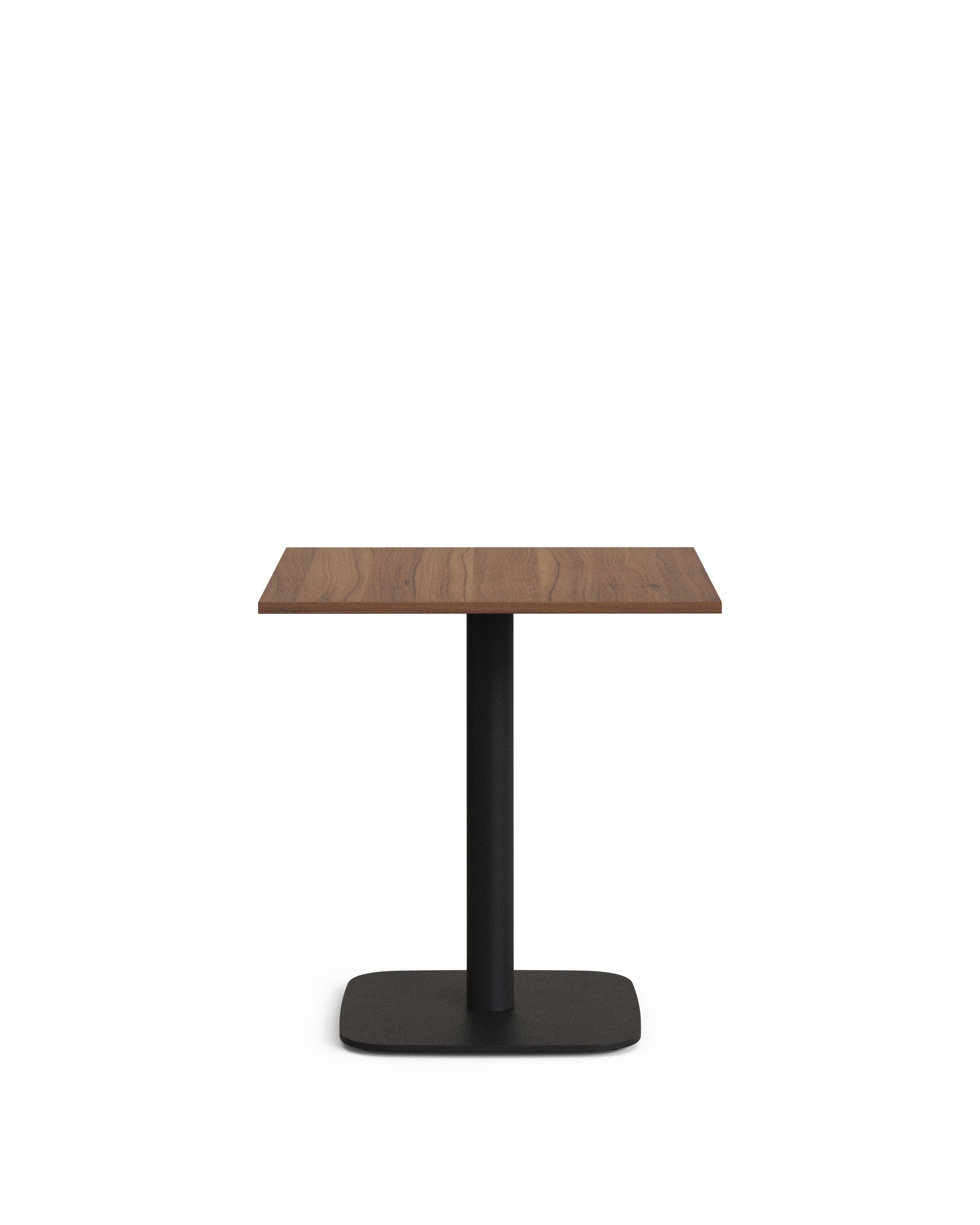 Стол с меламиновой столешницей, толщиной 19 мм. Железная ножка, окрашенная в матовый черный цвет. Подходит для внутренних помещений.
