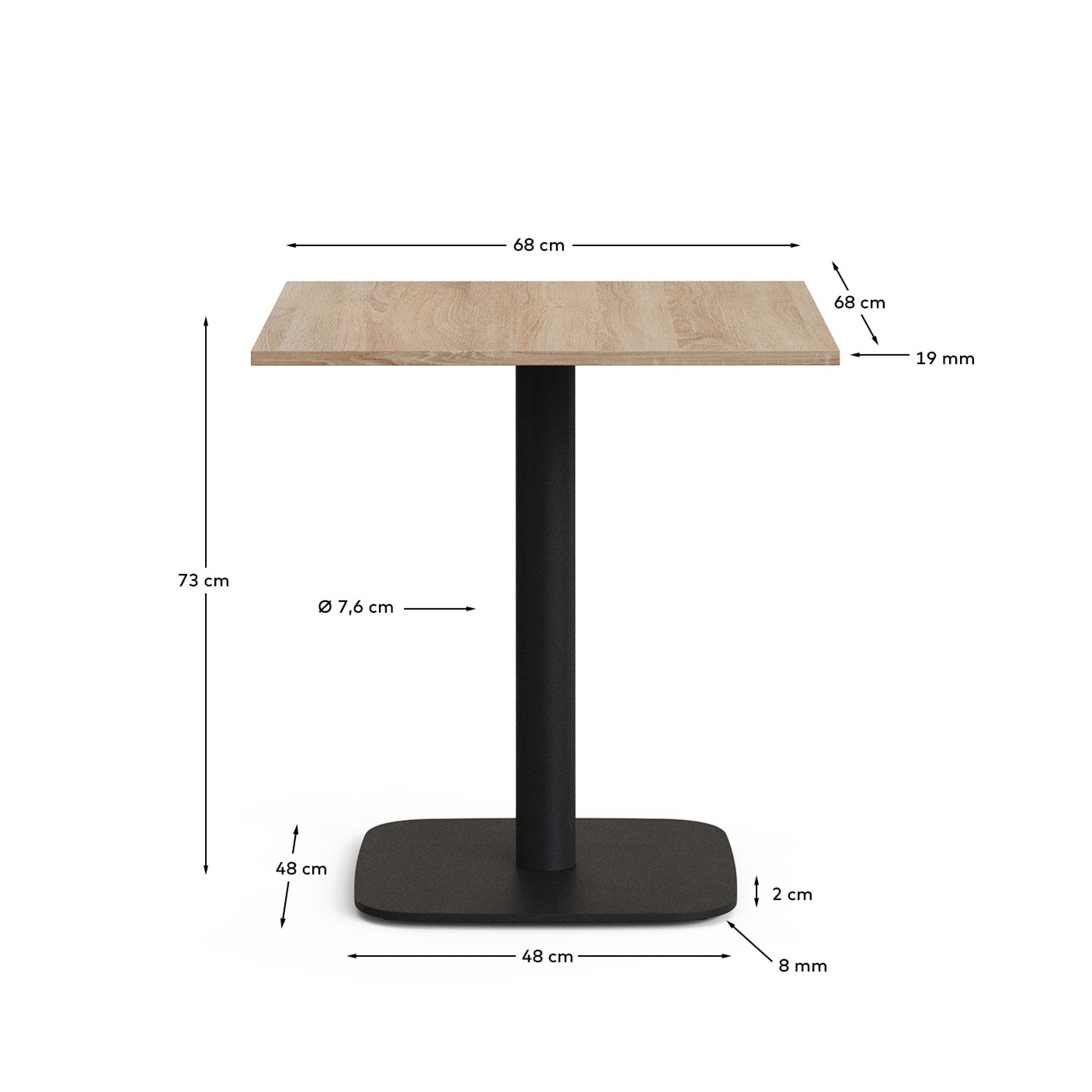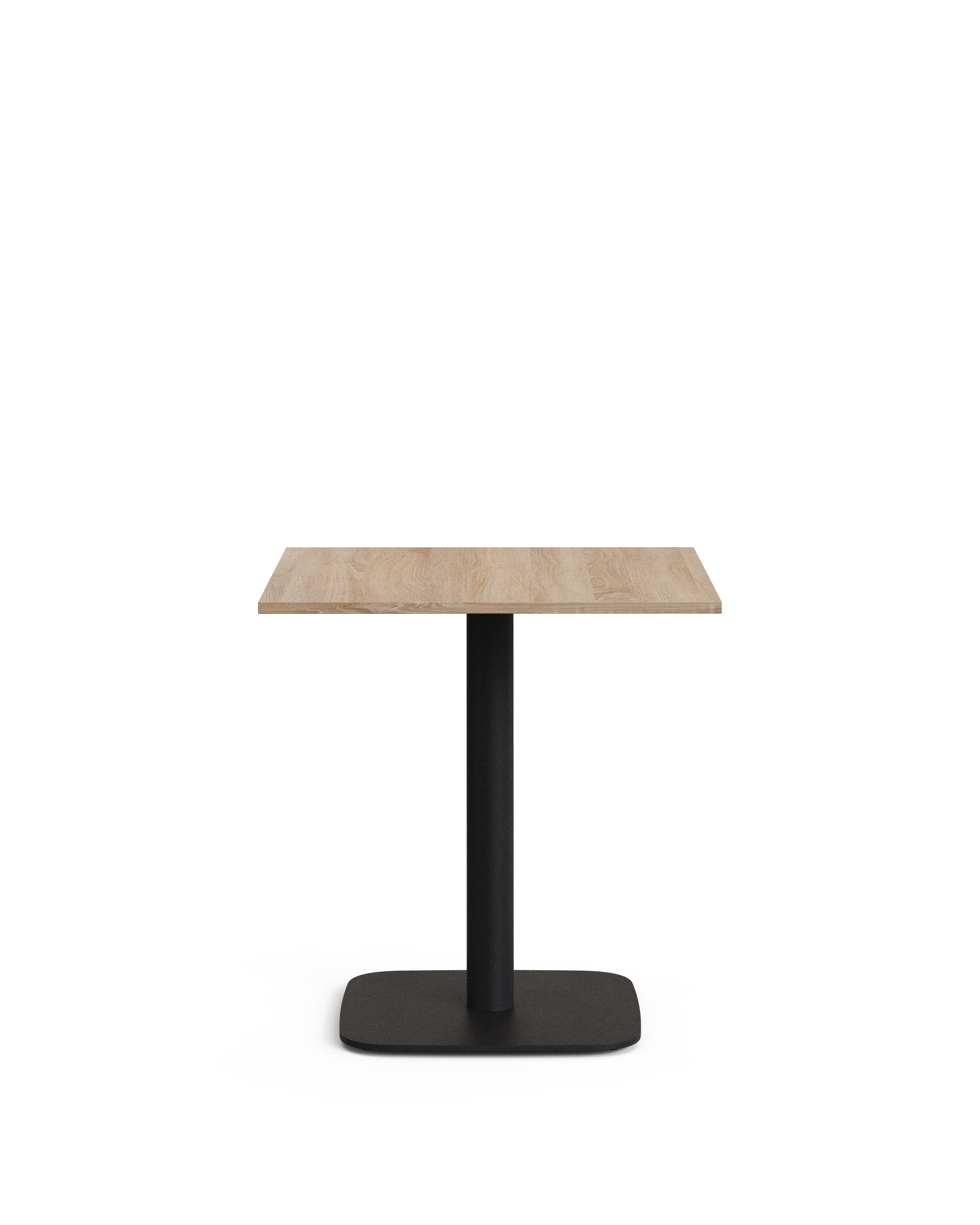 Стол с меламиновой столешницей, толщиной 19 мм. Железная ножка, окрашенная в матовый черный цвет. Подходит для внутренних помещений.