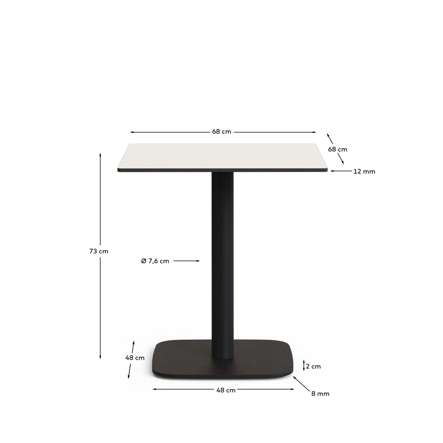 Стол со столешницей из компактной плиты HPL с двух сторон толщиной 12 мм. Плиты HPL устойчивы к пятнам, ударам, истиранию и высоким температурам. Антибактериальный и подходит для открытых пространств.