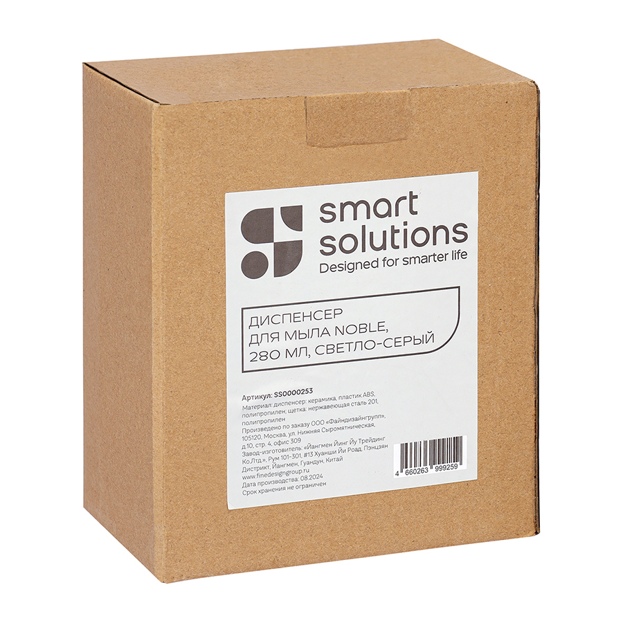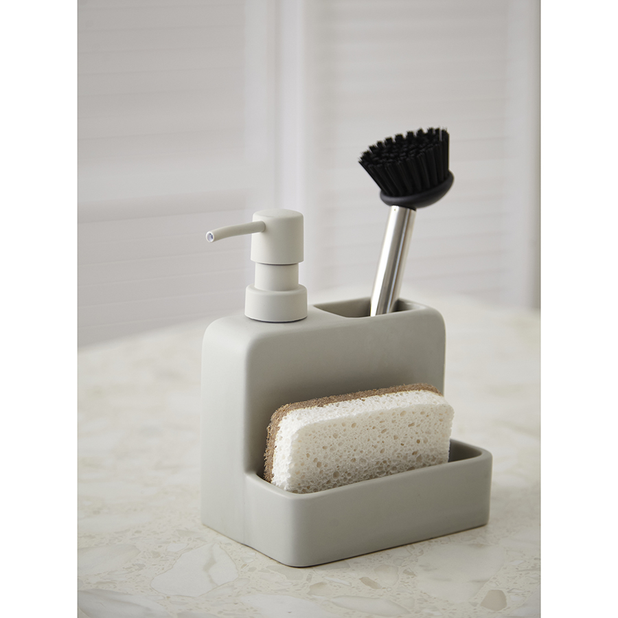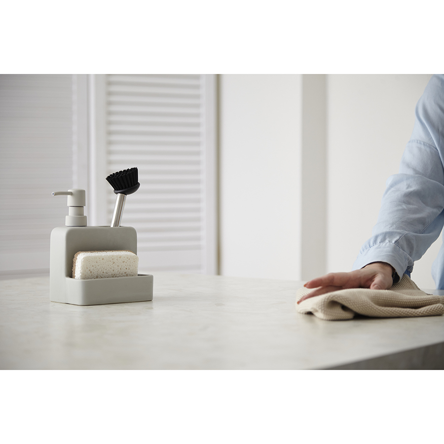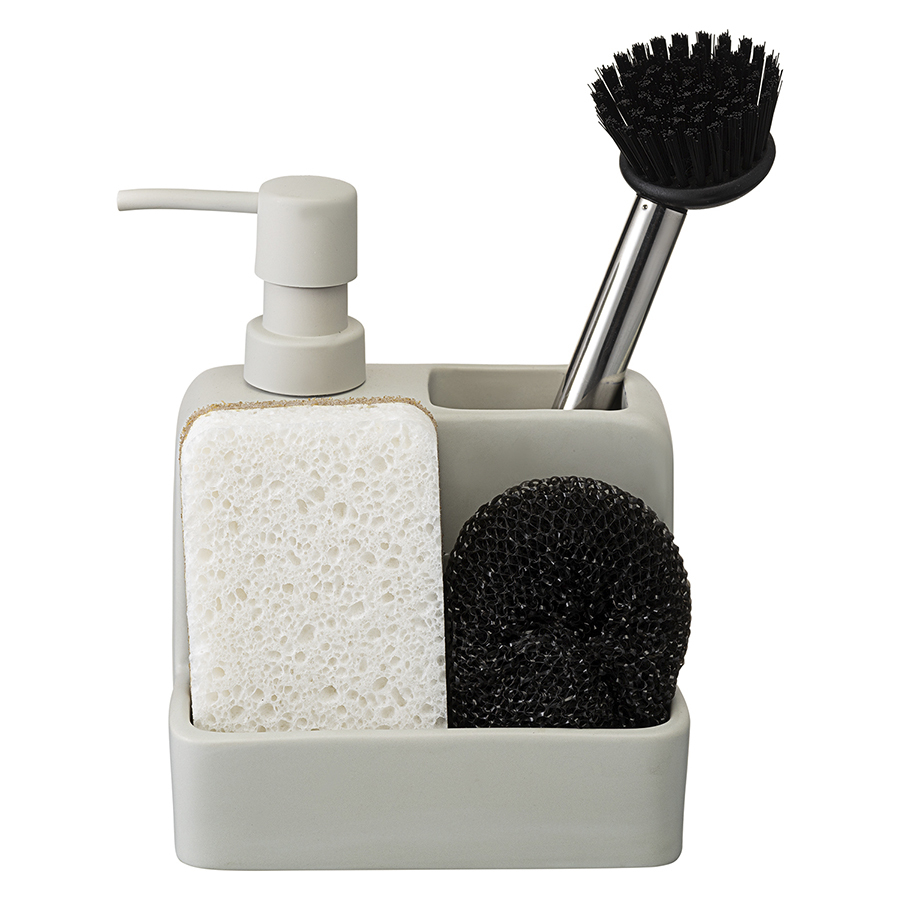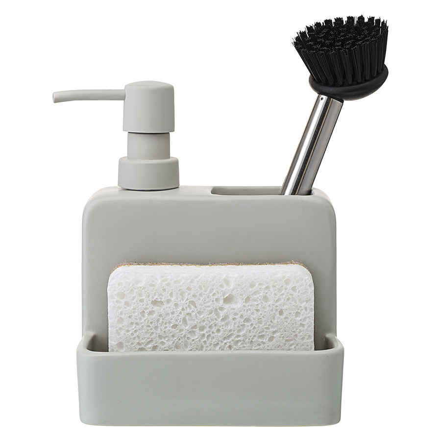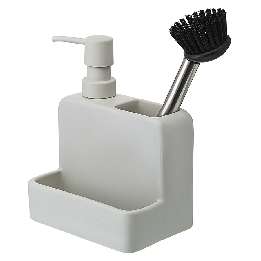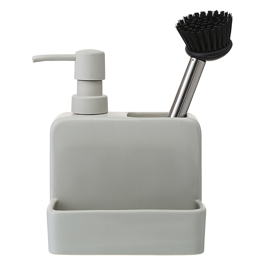 Материалы: диспенсер – керамика, ABS-пластик, полипропилен; щетка – нержавеющая сталь 201, полипропилен. Размеры: 15х9,5х17,5 см. Объем: 280 мл. Цвет: светло-серый.