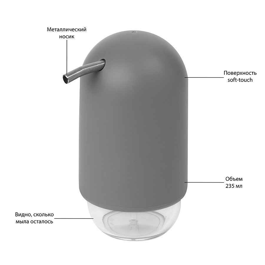 Материалы: полипропилен, акрил, термопластичная резина. Размеры: 10х7х14 см. Объем: 235 мл. Цвет: серый.
