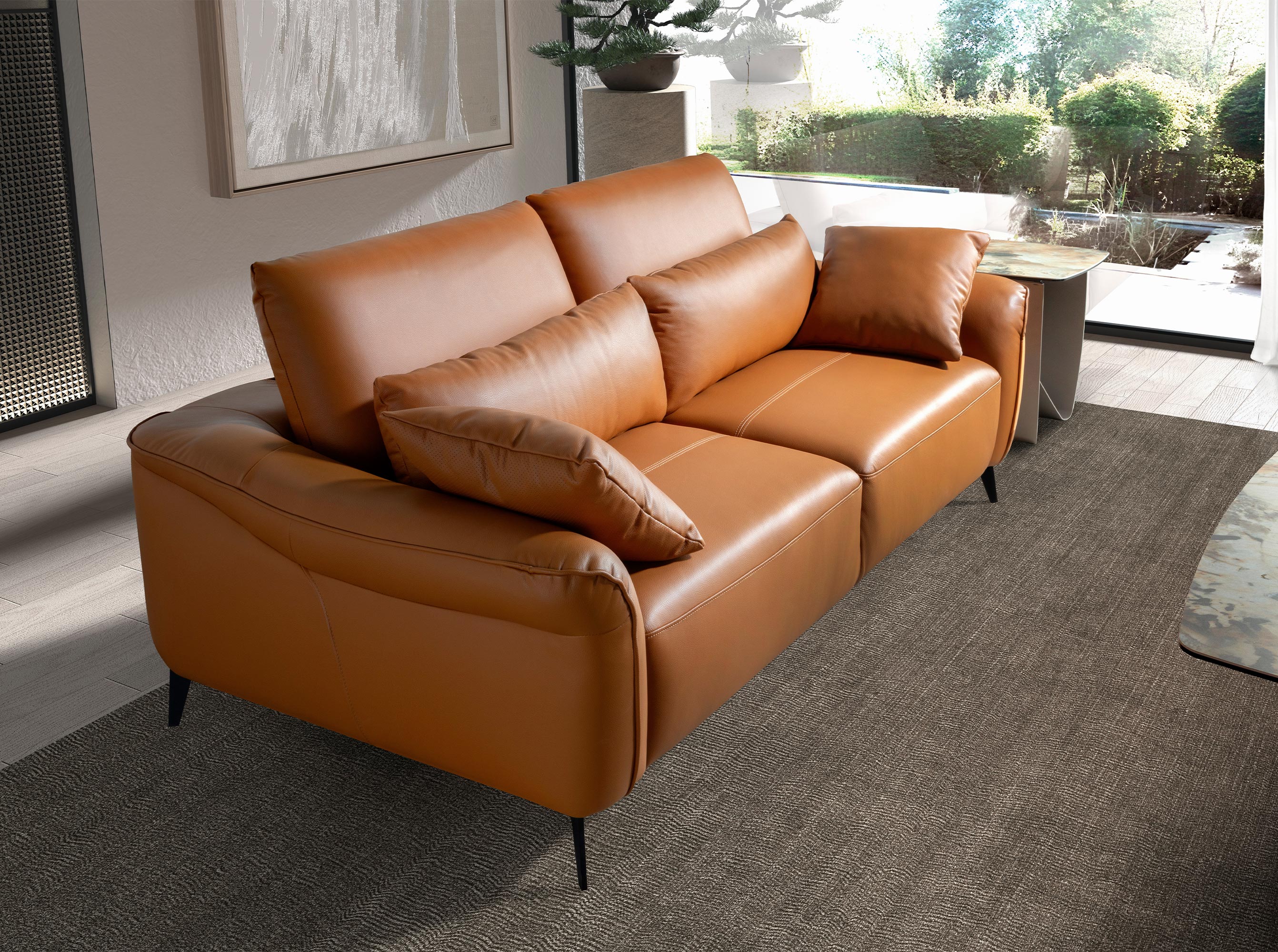 3-местный диван с современным дизайном, обитый коричневой воловьей кожей. Благодаря своему стилю и ножкам из нержавеющей стали, окрашенным черной эпоксидной краской, этот диван привнесет нотку авангарда и элегантности, которую вы ищете в своем доме.