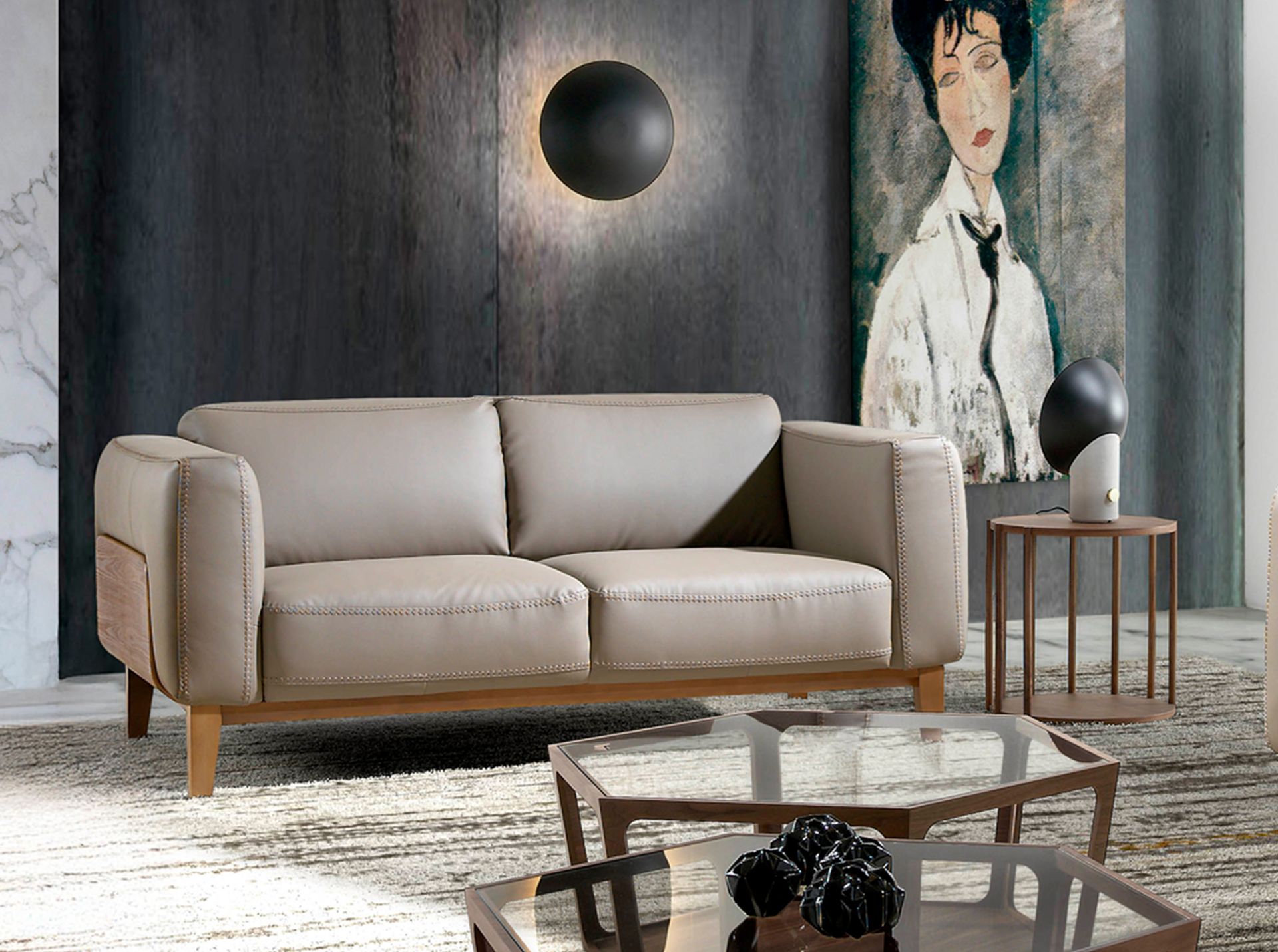 Диван 5353 от фабрики Angel Cerda – изысканность и элегантность, которые вы ищете для своей гостиной. Диван 5353 ни у кого не оставит сомнений, что выглядит статусно, дорого и современно. Обивка из натуральной кожи и декоративные деревянные пластины будут демонстрировать отличный вкус владельца и умение разбираться в ценной мебели. Здесь точно не будет сомнений в том, что такой диван станет главным действующим лицом комнаты. Диван 5353 представлен в двух вариантах длины – на два и три посадочных места. Конструкционно они одинаковые, отличаются только длиной. Каркас дивана выполнен из натуральной сосны. Наполнитель – пенополиуретан плотностью 20 кг/м3. Это современный синтетический материал, который не теряет свою упругость, даже после нескольких лет интенсивной эксплуатации. Материал обивки – натуральная воловья кожа толщиной 1 мм. У базовой модели она цвета тауп, но при желании можно выбрать другой оттенок по каталогу производителя. Наружная деревянная часть (опора, ножки, декоративные пластины) выполнены из массива орехового дерева и покрыты полиуретаном для защиты от негативных воздействий внешней среды. Они имеют натуральный цвет, с полной передачей оттенка зерен, вершин. Раскладной механизм отсутствует. Размеры: ширина – 159 или 209 см, высота – 77 см, глубина – 92 см, глубина сиденья – 69 см, высота ножек – 15 см. Вес – 67 или 103 кг. Ножки потребуется прикрутить самостоятельно. крепеж и инструкция входят в комплект.