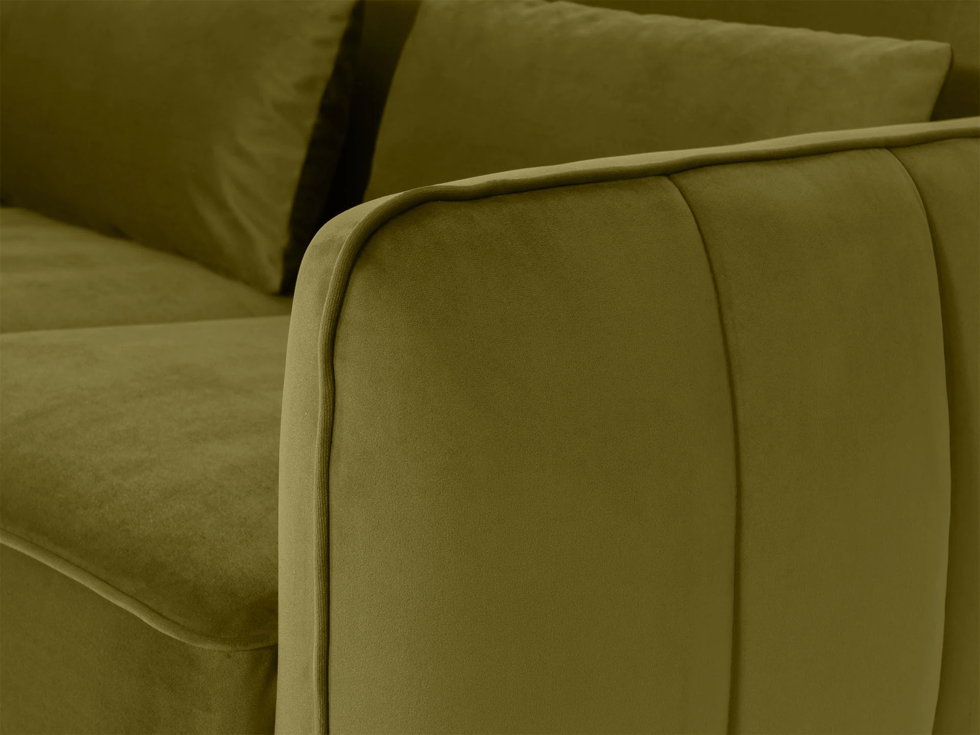 Элегантный диван с комфортной посадкой отличается безупречным стилем. Гармония лаконичных форм и мягких элементов. Сдержанный дизайн отлично впишется как в яркий интерьер, так и в помещение со строгой обстановкой. Спинка и подлокотники расположены на одном уровне. Такая конструкция создаёт границы уединённого пространства и отвечает за безмятежный отдых. Идеальным дополнением которого являются упругие подушки спинки.В основе каркаса – брус хвойных пород. Что обеспечивает надёжность и долгий срок службы дивана. За устойчивость отвечают металлические опоры высотой 150 мм, окрашенные эмалью. Имеет силиконовые подпятники, поэтому не оставят «следов» на напольном покрытии. Ножки смотрятся изящно. Благодаря им, легко делать уборку под основанием дивана. Диван укомплектован четырьмя подушками, которые входят. Подушки сиденья состоят из пружинного блока, войлочного настила, нескольких слоев пенополиуретана. Материал нового поколения гипоаллергенен и экологически безопасен. Его ячеистая структура обладает повышенной прочностью и «анатомической» памятью. Не проминается, моментально восстанавливает форму.Основной лицевой чехол несъёмный, чехлы подушек – съёмные. По периметру диван декорирован кантом, который придаёт завершённость его внешнему виду. Материал обивки – ткань с бархатной текстурой. Устойчива к истиранию, выпадению ворса. Смотрится благородно и подчёркивает уникальность модели. Диван Amsterdam – идеальное сочетание высокого качества материалов и эргономичности. Привнесёт в ваш дом чувство расслабления и уюта.