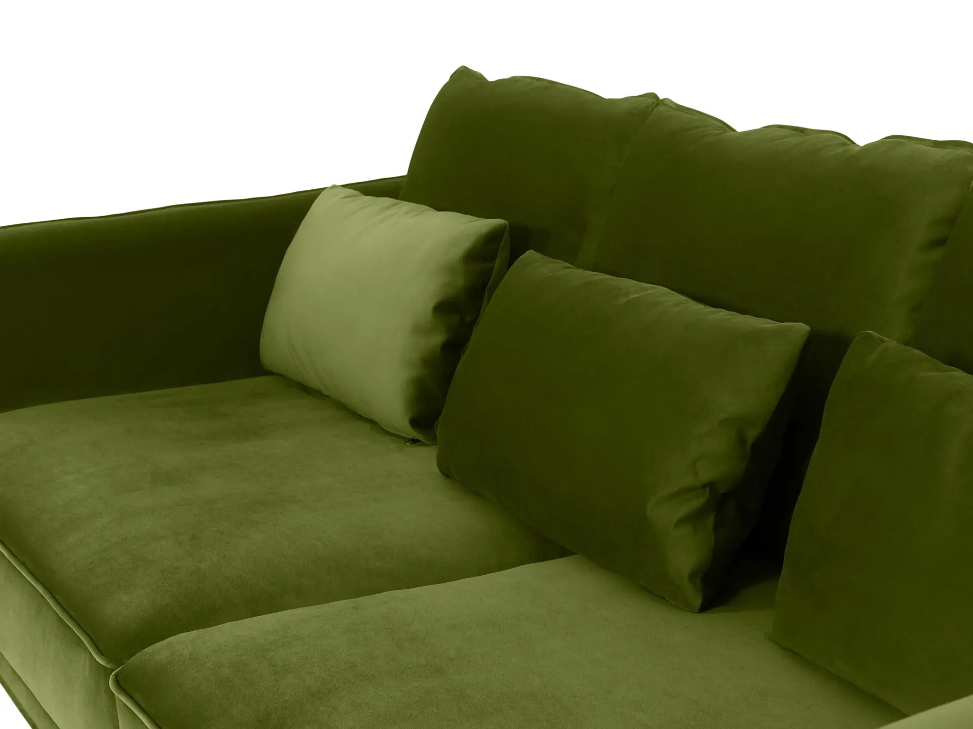 Элегантный диван с комфортной посадкой отличается безупречным стилем. Гармония лаконичных форм и мягких элементов. Сдержанный дизайн отлично впишется как в яркий интерьер, так и в помещение со строгой обстановкой. Спинка и подлокотники расположены на одном уровне. Такая конструкция создаёт границы уединённого пространства и отвечает за безмятежный отдых. Идеальным дополнением которого являются упругие подушки спинки.В основе каркаса – брус хвойных пород. Что обеспечивает надёжность и долгий срок службы дивана. За устойчивость отвечают металлические опоры высотой 150 мм, окрашенные эмалью. Диван укомплектован шестью подушками, которые входят. Имеют силиконовые подпятники, поэтому не оставят «следов» на напольном покрытии. Ножки смотрятся изящно. Благодаря им, легко делать уборку под основанием дивана.Подушки сиденья состоят из пружинного блока, войлочного настила, нескольких слоев пенополиуретана. Материал нового поколения гипоаллергенен и экологически безопасен. Его ячеистая структура обладает повышенной прочностью и «анатомической» памятью. Не проминается, моментально восстанавливает форму.Основной лицевой чехол несъёмный, чехлы подушек – съёмные. По периметру диван декорирован кантом, который придаёт завершённость его внешнему виду. Материал обивки – ткань с бархатной текстурой. Устойчива к истиранию, выпадению ворса. Смотрится благородно и подчёркивает уникальность модели. Диван Amsterdam – идеальное сочетание высокого качества материалов и эргономичности. Привнесёт в ваш дом чувство расслабления и уюта.