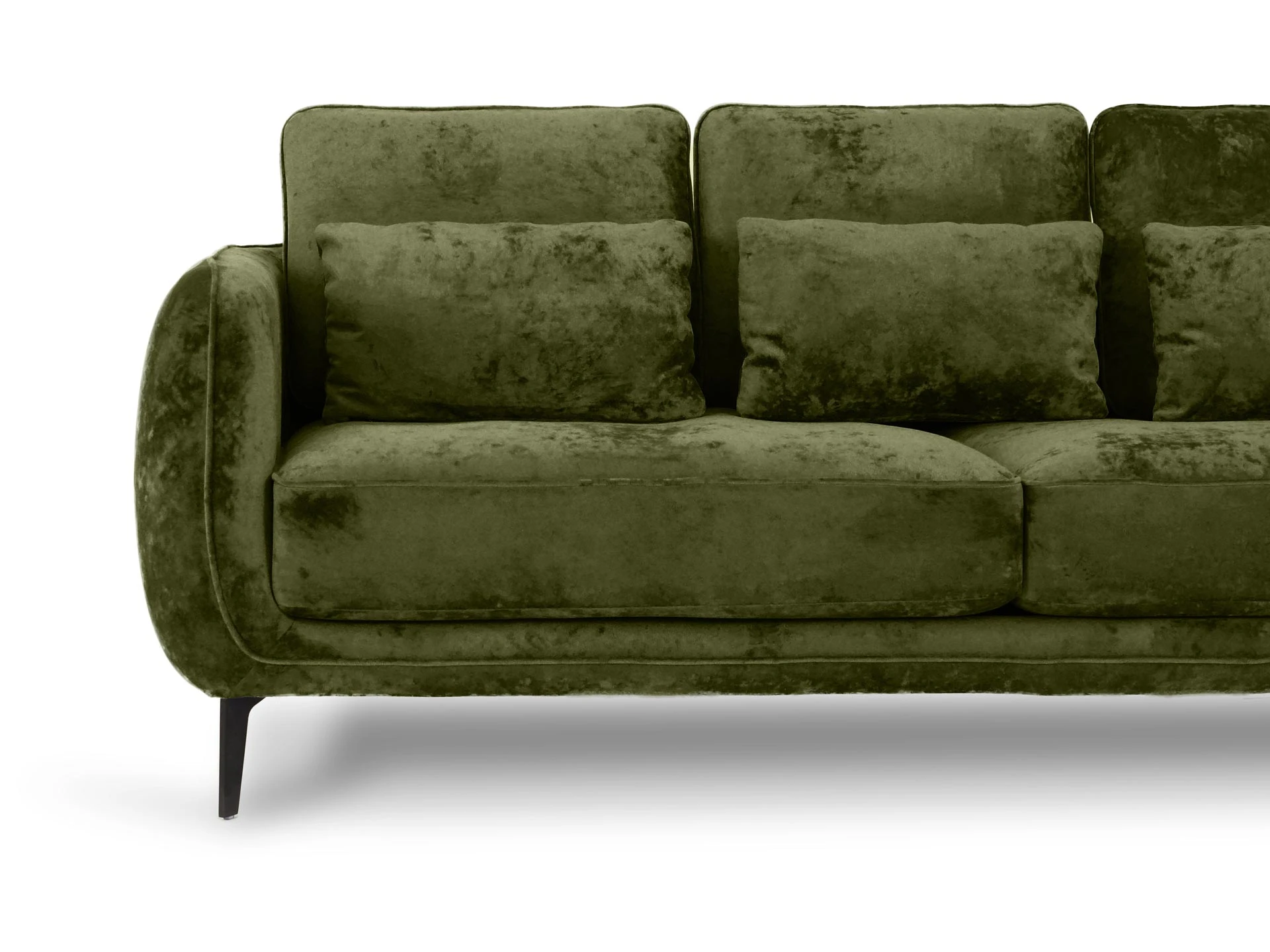 Элегантный диван с комфортной посадкой отличается безупречным стилем. Гармония лаконичных форм и мягких элементов. Сдержанный дизайн отлично впишется как в яркий интерьер, так и в помещение со строгой обстановкой. Спинка и подлокотники расположены на одном уровне. Такая конструкция создаёт границы уединённого пространства и отвечает за безмятежный отдых. Идеальным дополнением которого являются упругие подушки спинки.В основе каркаса – брус хвойных пород. Что обеспечивает надёжность и долгий срок службы дивана. За устойчивость отвечают металлические опоры высотой 150 мм, окрашенные эмалью. Диван укомплектован шестью подушками, которые входят. Имеют силиконовые подпятники, поэтому не оставят «следов» на напольном покрытии. Ножки смотрятся изящно. Благодаря им, легко делать уборку под основанием дивана.Подушки сиденья состоят из пружинного блока, войлочного настила, нескольких слоев пенополиуретана. Материал нового поколения гипоаллергенен и экологически безопасен. Его ячеистая структура обладает повышенной прочностью и «анатомической» памятью. Не проминается, моментально восстанавливает форму.Основной лицевой чехол несъёмный, чехлы подушек – съёмные. По периметру диван декорирован кантом, который придаёт завершённость его внешнему виду. Материал обивки – ткань с бархатной текстурой. Устойчива к истиранию, выпадению ворса. Смотрится благородно и подчёркивает уникальность модели. Диван Amsterdam – идеальное сочетание высокого качества материалов и эргономичности. Привнесёт в ваш дом чувство расслабления и уюта.