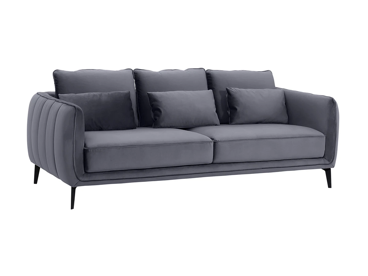 Элегантный диван с комфортной посадкой отличается безупречным стилем. Гармония лаконичных форм и мягких элементов. Сдержанный дизайн отлично впишется как в яркий интерьер, так и в помещение со строгой обстановкой. Спинка и подлокотники расположены на одном уровне. Такая конструкция создаёт границы уединённого пространства и отвечает за безмятежный отдых. Идеальным дополнением которого являются упругие подушки спинки.В основе каркаса – брус хвойных пород. Что обеспечивает надёжность и долгий срок службы дивана. За устойчивость отвечают металлические опоры высотой 150 мм, окрашенные эмалью. Диван укомплектован шестью подушками, которые входят. Имеют силиконовые подпятники, поэтому не оставят «следов» на напольном покрытии. Ножки смотрятся изящно. Благодаря им, легко делать уборку под основанием дивана.Подушки сиденья состоят из пружинного блока, войлочного настила, нескольких слоев пенополиуретана. Материал нового поколения гипоаллергенен и экологически безопасен. Его ячеистая структура обладает повышенной прочностью и «анатомической» памятью. Не проминается, моментально восстанавливает форму.Основной лицевой чехол несъёмный, чехлы подушек – съёмные. По периметру диван декорирован кантом, который придаёт завершённость его внешнему виду. Материал обивки – ткань с бархатной текстурой. Устойчива к истиранию, выпадению ворса. Смотрится благородно и подчёркивает уникальность модели. Диван Amsterdam – идеальное сочетание высокого качества материалов и эргономичности. Привнесёт в ваш дом чувство расслабления и уюта.