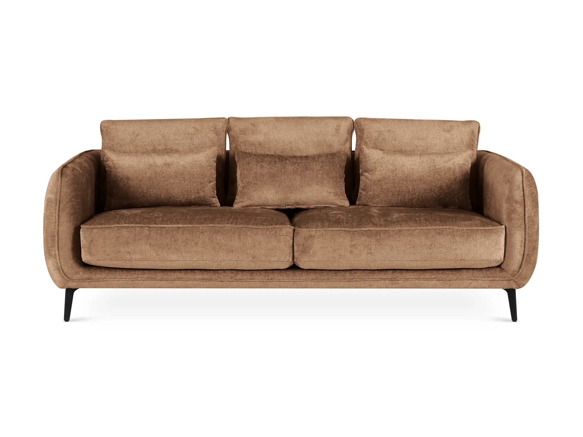 Элегантный диван с комфортной посадкой отличается безупречным стилем. Гармония лаконичных форм и мягких элементов. Сдержанный дизайн отлично впишется как в яркий интерьер, так и в помещение со строгой обстановкой. Спинка и подлокотники расположены на одном уровне. Такая конструкция создаёт границы уединённого пространства и отвечает за безмятежный отдых. Идеальным дополнением которого являются упругие подушки спинки.В основе каркаса – брус хвойных пород. Что обеспечивает надёжность и долгий срок службы дивана. За устойчивость отвечают металлические опоры высотой 150 мм, окрашенные эмалью. Диван укомплектован шестью подушками, которые входят. Имеют силиконовые подпятники, поэтому не оставят «следов» на напольном покрытии. Ножки смотрятся изящно. Благодаря им, легко делать уборку под основанием дивана.Подушки сиденья состоят из пружинного блока, войлочного настила, нескольких слоев пенополиуретана. Материал нового поколения гипоаллергенен и экологически безопасен. Его ячеистая структура обладает повышенной прочностью и «анатомической» памятью. Не проминается, моментально восстанавливает форму.Основной лицевой чехол несъёмный, чехлы подушек – съёмные. По периметру диван декорирован кантом, который придаёт завершённость его внешнему виду. Материал обивки – ткань с бархатной текстурой. Устойчива к истиранию, выпадению ворса. Смотрится благородно и подчёркивает уникальность модели. Диван Amsterdam – идеальное сочетание высокого качества материалов и эргономичности. Привнесёт в ваш дом чувство расслабления и уюта.