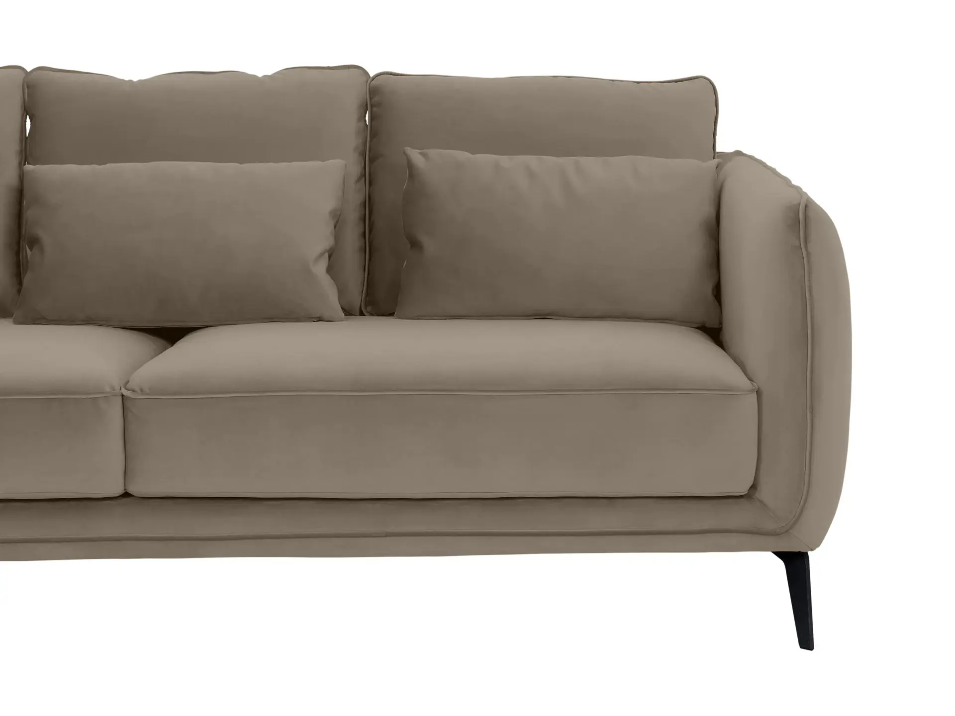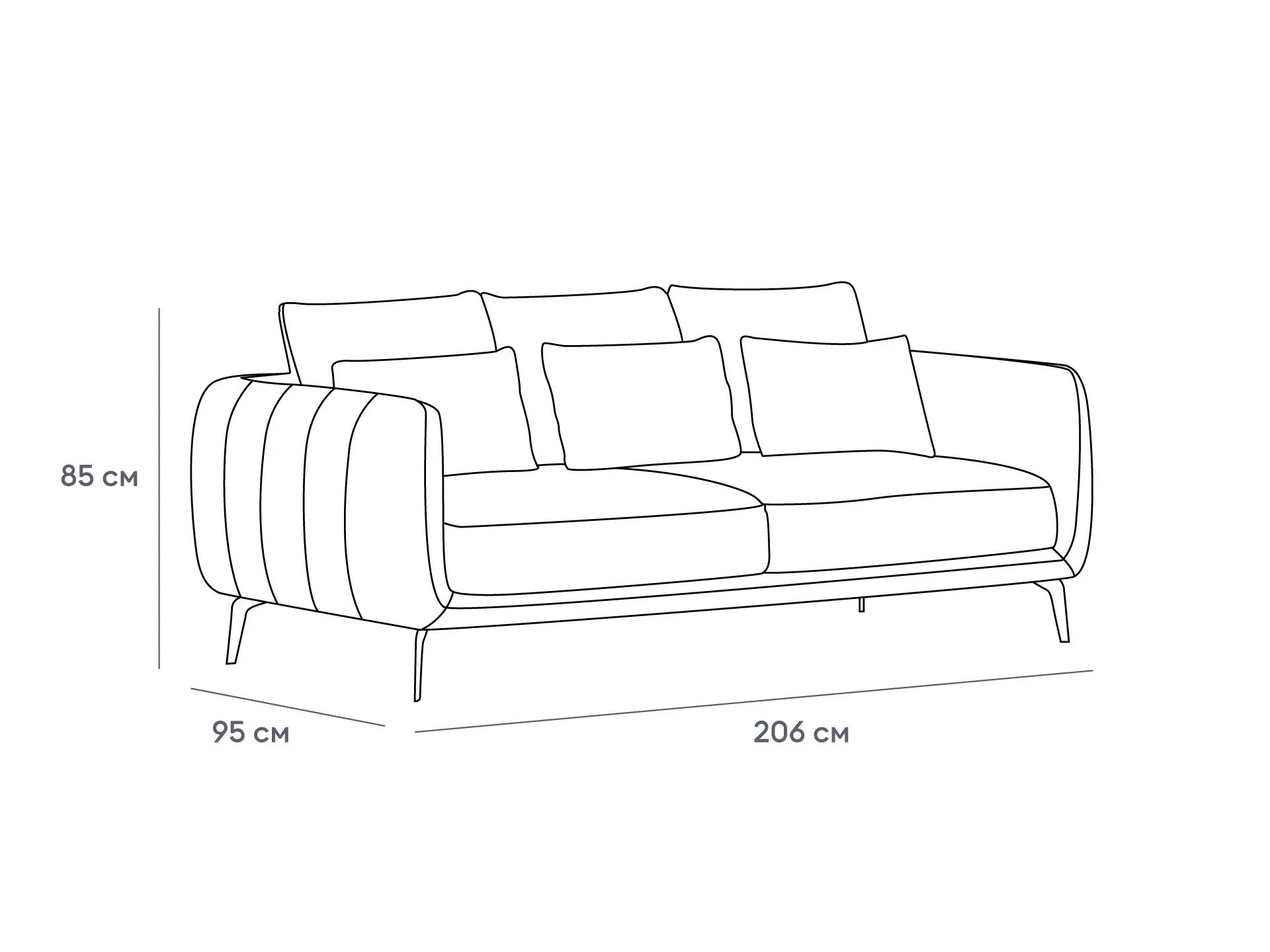 Элегантный диван с комфортной посадкой отличается безупречным стилем. Гармония лаконичных форм и мягких элементов. Сдержанный дизайн отлично впишется как в яркий интерьер, так и в помещение со строгой обстановкой. Спинка и подлокотники расположены на одном уровне. Такая конструкция создаёт границы уединённого пространства и отвечает за безмятежный отдых. Идеальным дополнением которого являются упругие подушки спинки.В основе каркаса – брус хвойных пород. Что обеспечивает надёжность и долгий срок службы дивана. За устойчивость отвечают металлические опоры высотой 150 мм, окрашенные эмалью. Диван укомплектован шестью подушками, которые входят. Имеют силиконовые подпятники, поэтому не оставят «следов» на напольном покрытии. Ножки смотрятся изящно. Благодаря им, легко делать уборку под основанием дивана.Подушки сиденья состоят из пружинного блока, войлочного настила, нескольких слоев пенополиуретана. Материал нового поколения гипоаллергенен и экологически безопасен. Его ячеистая структура обладает повышенной прочностью и «анатомической» памятью. Не проминается, моментально восстанавливает форму.Основной лицевой чехол несъёмный, чехлы подушек – съёмные. По периметру диван декорирован кантом, который придаёт завершённость его внешнему виду. Материал обивки – ткань с бархатной текстурой. Устойчива к истиранию, выпадению ворса. Смотрится благородно и подчёркивает уникальность модели. Диван Amsterdam – идеальное сочетание высокого качества материалов и эргономичности. Привнесёт в ваш дом чувство расслабления и уюта.