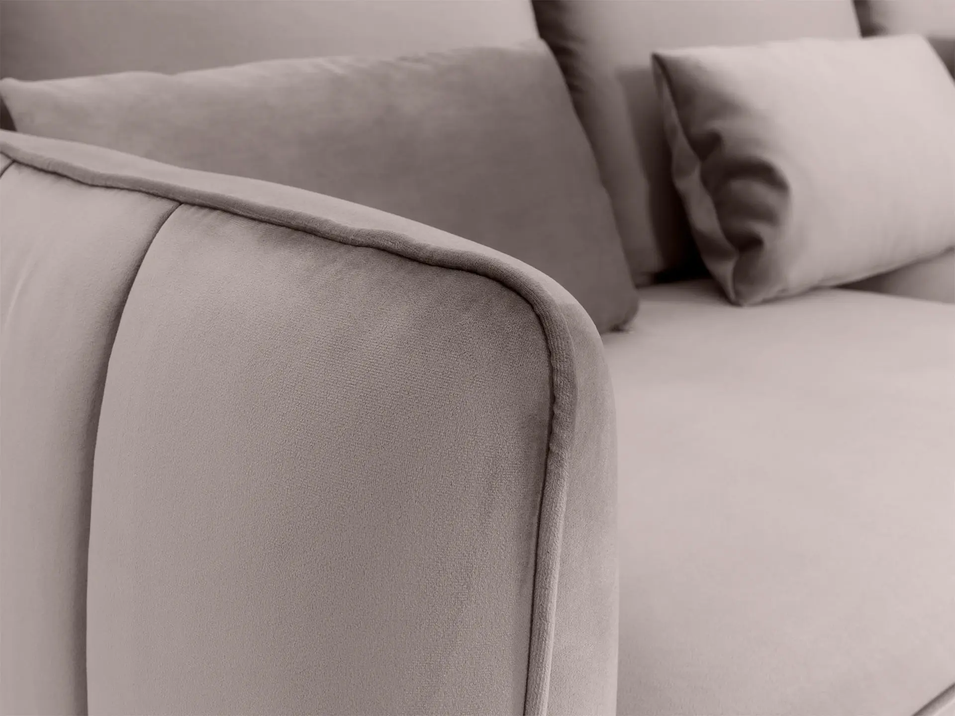 Элегантный диван с комфортной посадкой отличается безупречным стилем. Гармония лаконичных форм и мягких элементов. Сдержанный дизайн отлично впишется как в яркий интерьер, так и в помещение со строгой обстановкой. Спинка и подлокотники расположены на одном уровне. Такая конструкция создаёт границы уединённого пространства и отвечает за безмятежный отдых. Идеальным дополнением которого являются упругие подушки спинки.В основе каркаса – брус хвойных пород. Что обеспечивает надёжность и долгий срок службы дивана. За устойчивость отвечают металлические опоры высотой 150 мм, окрашенные эмалью. Диван укомплектован шестью подушками, которые входят. Имеют силиконовые подпятники, поэтому не оставят «следов» на напольном покрытии. Ножки смотрятся изящно. Благодаря им, легко делать уборку под основанием дивана.Подушки сиденья состоят из пружинного блока, войлочного настила, нескольких слоев пенополиуретана. Материал нового поколения гипоаллергенен и экологически безопасен. Его ячеистая структура обладает повышенной прочностью и «анатомической» памятью. Не проминается, моментально восстанавливает форму.Основной лицевой чехол несъёмный, чехлы подушек – съёмные. По периметру диван декорирован кантом, который придаёт завершённость его внешнему виду. Материал обивки – ткань с бархатной текстурой. Устойчива к истиранию, выпадению ворса. Смотрится благородно и подчёркивает уникальность модели. Диван Amsterdam – идеальное сочетание высокого качества материалов и эргономичности. Привнесёт в ваш дом чувство расслабления и уюта.