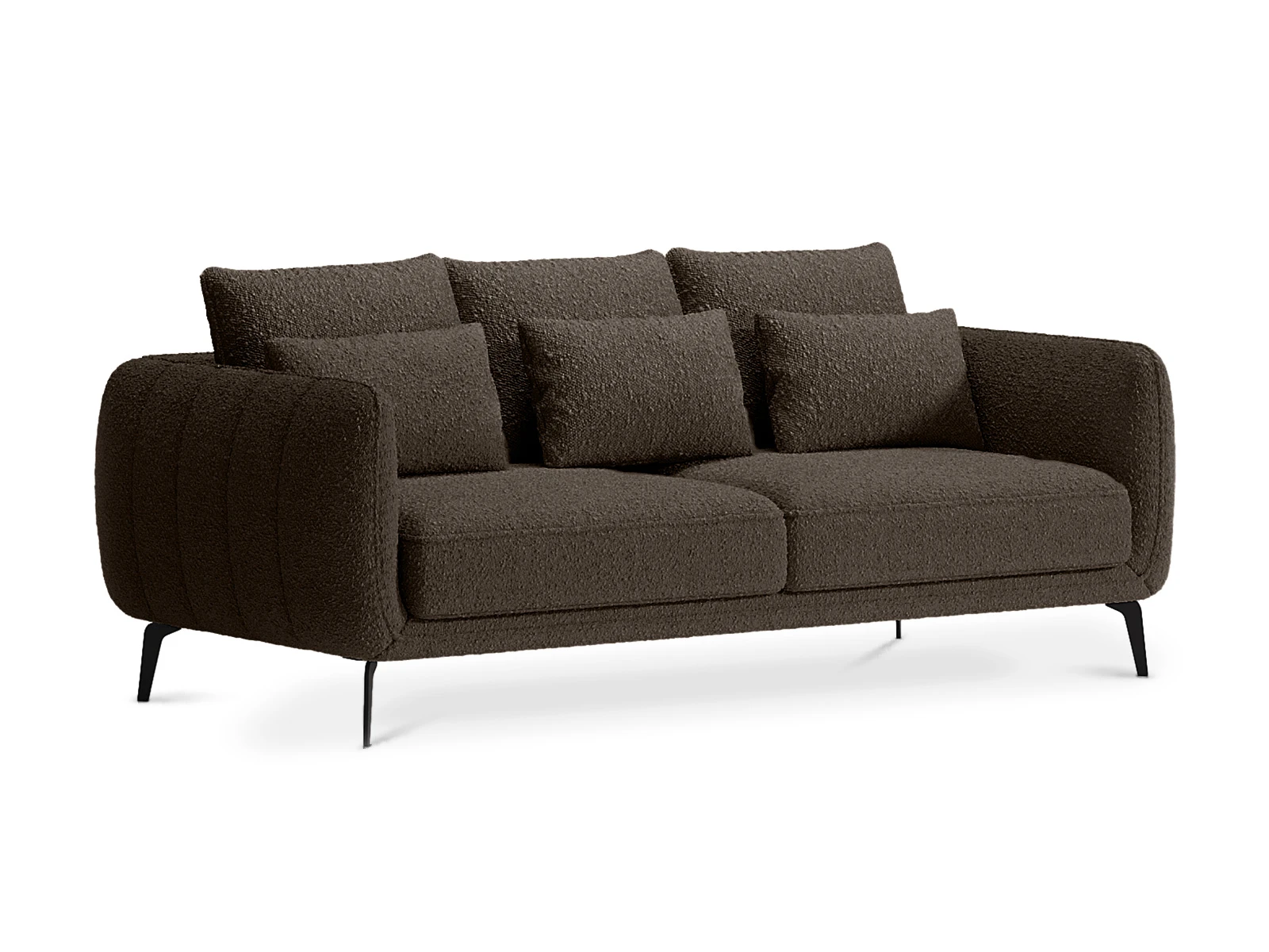 Элегантный диван с комфортной посадкой отличается безупречным стилем. Гармония лаконичных форм и мягких элементов. Сдержанный дизайн отлично впишется как в яркий интерьер, так и в помещение со строгой обстановкой. Спинка и подлокотники расположены на одном уровне. Такая конструкция создаёт границы уединённого пространства и отвечает за безмятежный отдых. Идеальным дополнением которого являются упругие подушки спинки.В основе каркаса – брус хвойных пород. Что обеспечивает надёжность и долгий срок службы дивана. За устойчивость отвечают металлические опоры высотой 150 мм, окрашенные эмалью. Диван укомплектован шестью подушками, которые входят. Имеют силиконовые подпятники, поэтому не оставят «следов» на напольном покрытии. Ножки смотрятся изящно. Благодаря им, легко делать уборку под основанием дивана.Подушки сиденья состоят из пружинного блока, войлочного настила, нескольких слоев пенополиуретана. Материал нового поколения гипоаллергенен и экологически безопасен. Его ячеистая структура обладает повышенной прочностью и «анатомической» памятью. Не проминается, моментально восстанавливает форму.Основной лицевой чехол несъёмный, чехлы подушек – съёмные. По периметру диван декорирован кантом, который придаёт завершённость его внешнему виду. Материал обивки – ткань с бархатной текстурой. Устойчива к истиранию, выпадению ворса. Смотрится благородно и подчёркивает уникальность модели. Диван Amsterdam – идеальное сочетание высокого качества материалов и эргономичности. Привнесёт в ваш дом чувство расслабления и уюта.