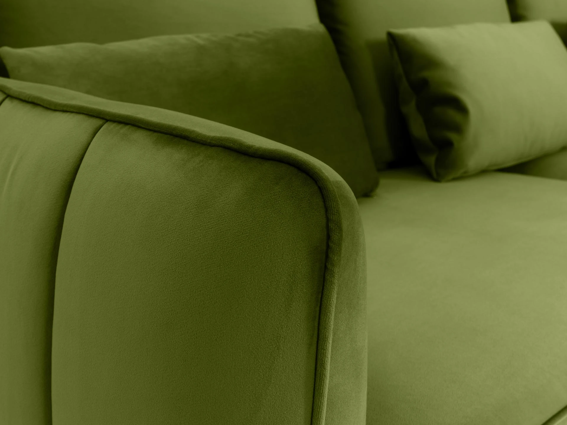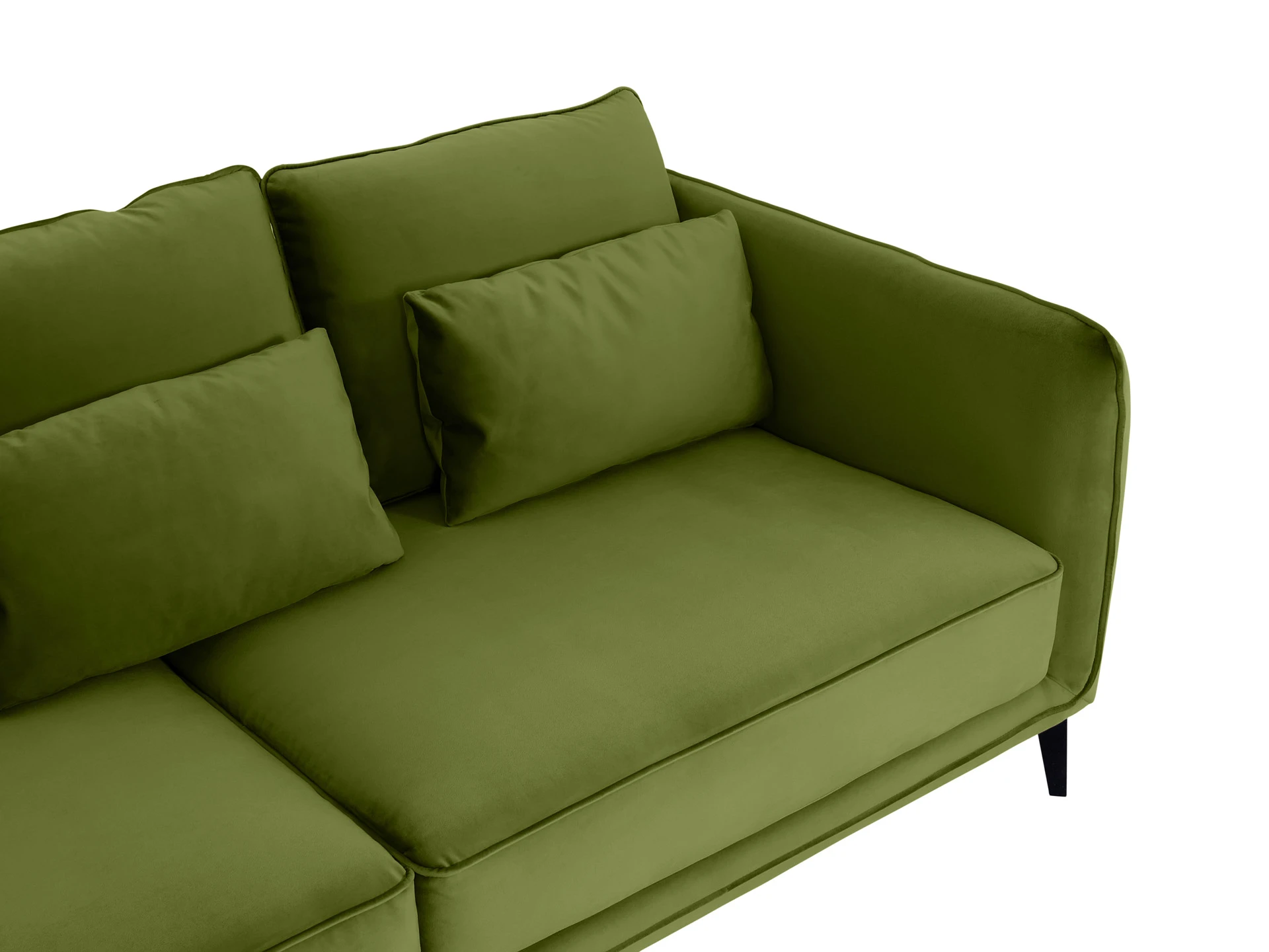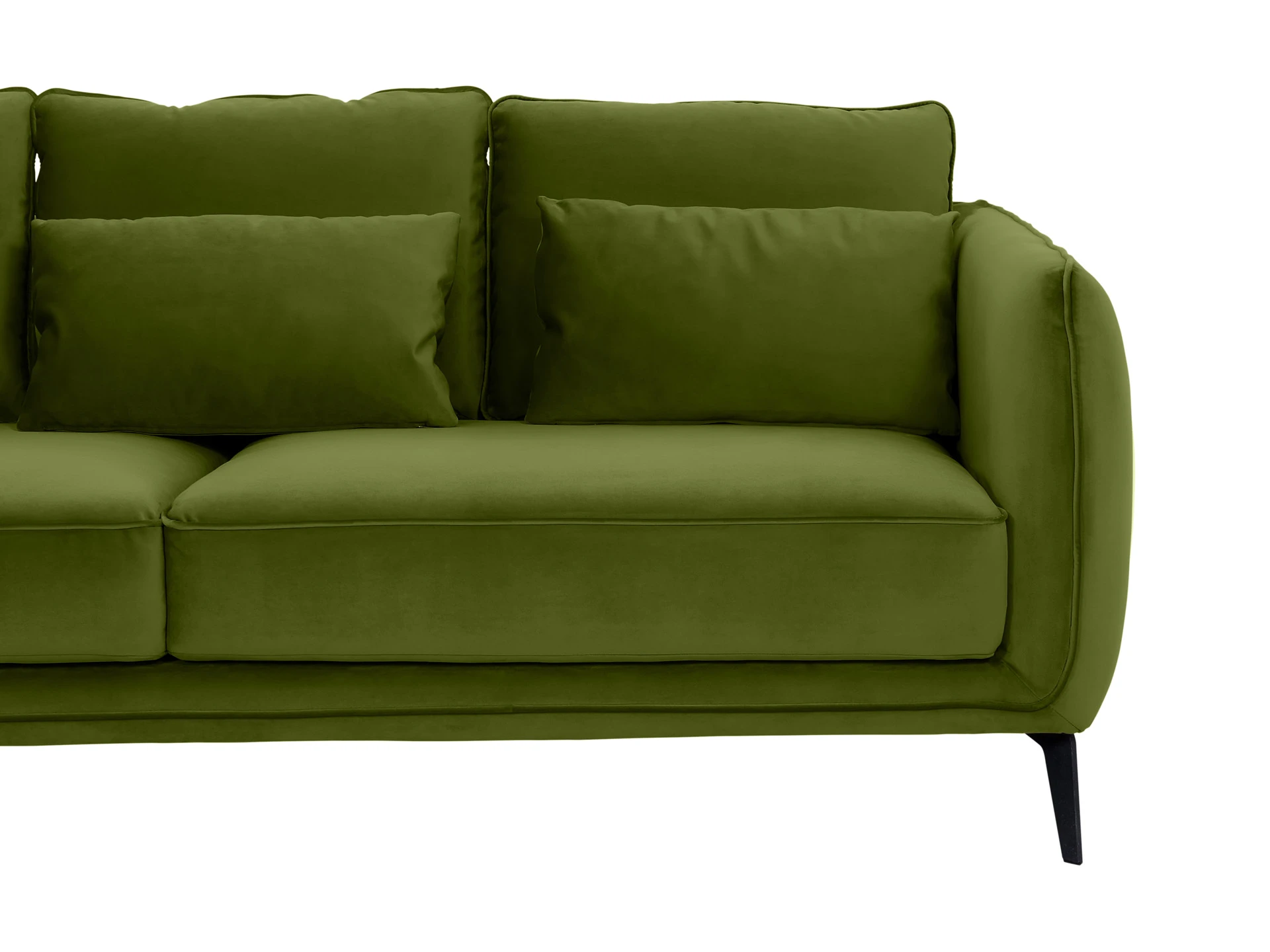 Элегантный диван с комфортной посадкой отличается безупречным стилем. Гармония лаконичных форм и мягких элементов. Сдержанный дизайн отлично впишется как в яркий интерьер, так и в помещение со строгой обстановкой. Спинка и подлокотники расположены на одном уровне. Такая конструкция создаёт границы уединённого пространства и отвечает за безмятежный отдых. Идеальным дополнением которого являются упругие подушки спинки.В основе каркаса – брус хвойных пород. Что обеспечивает надёжность и долгий срок службы дивана. За устойчивость отвечают металлические опоры высотой 150 мм, окрашенные эмалью. Диван укомплектован шестью подушками, которые входят. Имеют силиконовые подпятники, поэтому не оставят «следов» на напольном покрытии. Ножки смотрятся изящно. Благодаря им, легко делать уборку под основанием дивана.Подушки сиденья состоят из пружинного блока, войлочного настила, нескольких слоев пенополиуретана. Материал нового поколения гипоаллергенен и экологически безопасен. Его ячеистая структура обладает повышенной прочностью и «анатомической» памятью. Не проминается, моментально восстанавливает форму.Основной лицевой чехол несъёмный, чехлы подушек – съёмные. По периметру диван декорирован кантом, который придаёт завершённость его внешнему виду. Материал обивки – ткань с бархатной текстурой. Устойчива к истиранию, выпадению ворса. Смотрится благородно и подчёркивает уникальность модели. Диван Amsterdam – идеальное сочетание высокого качества материалов и эргономичности. Привнесёт в ваш дом чувство расслабления и уюта.