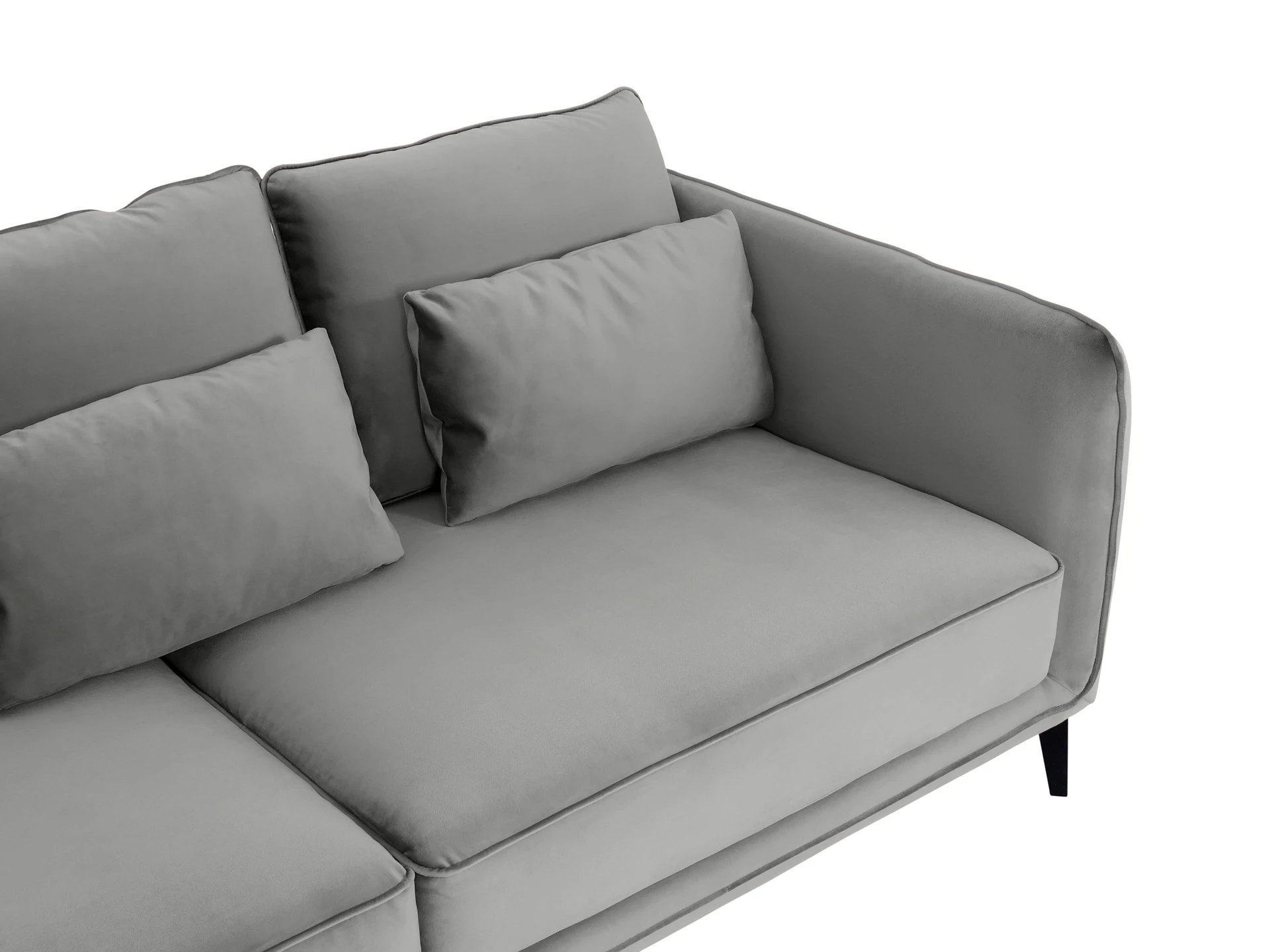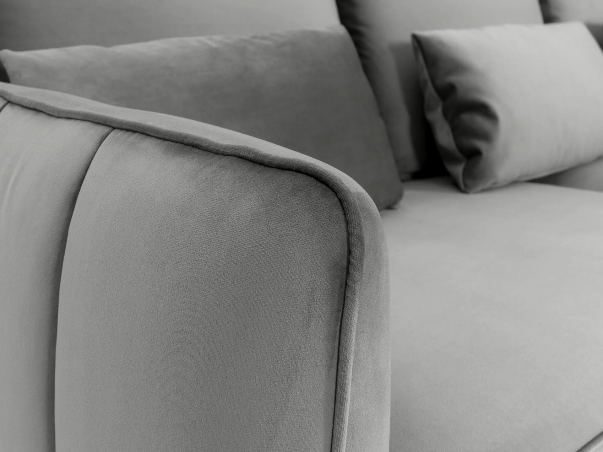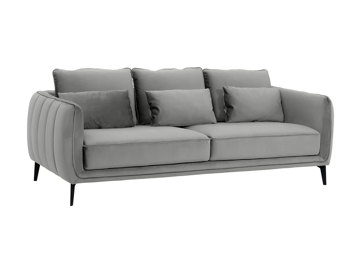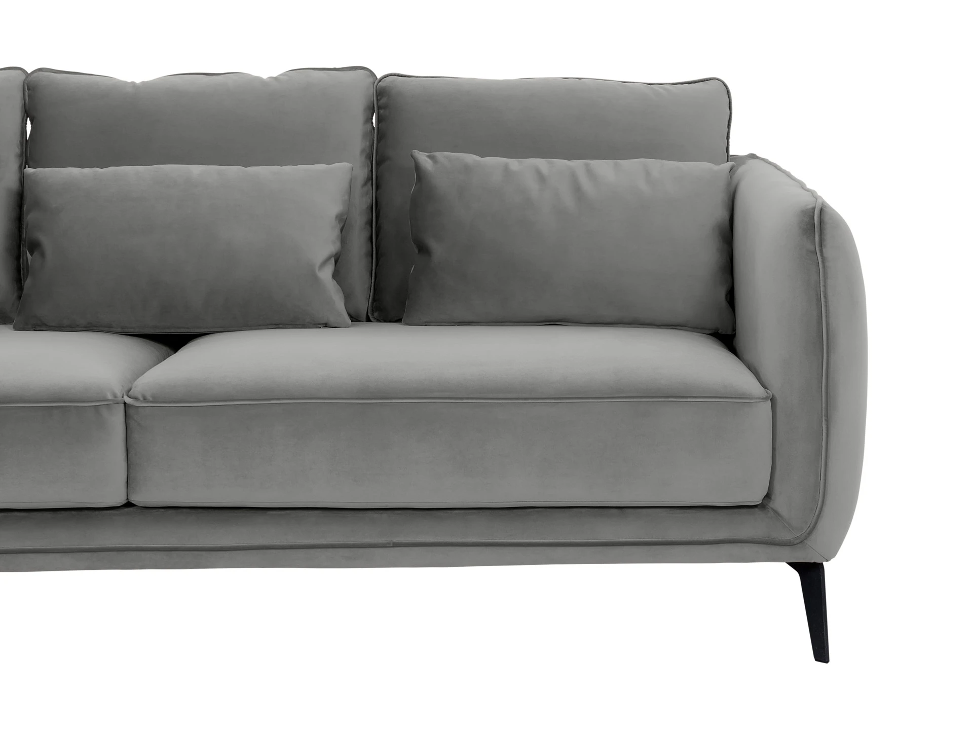 Элегантный диван с комфортной посадкой отличается безупречным стилем. Гармония лаконичных форм и мягких элементов. Сдержанный дизайн отлично впишется как в яркий интерьер, так и в помещение со строгой обстановкой. Спинка и подлокотники расположены на одном уровне. Такая конструкция создаёт границы уединённого пространства и отвечает за безмятежный отдых. Идеальным дополнением которого являются упругие подушки спинки.В основе каркаса – брус хвойных пород. Что обеспечивает надёжность и долгий срок службы дивана. За устойчивость отвечают металлические опоры высотой 150 мм, окрашенные эмалью. Диван укомплектован шестью подушками, которые входят. Имеют силиконовые подпятники, поэтому не оставят «следов» на напольном покрытии. Ножки смотрятся изящно. Благодаря им, легко делать уборку под основанием дивана.Подушки сиденья состоят из пружинного блока, войлочного настила, нескольких слоев пенополиуретана. Материал нового поколения гипоаллергенен и экологически безопасен. Его ячеистая структура обладает повышенной прочностью и «анатомической» памятью. Не проминается, моментально восстанавливает форму.Основной лицевой чехол несъёмный, чехлы подушек – съёмные. По периметру диван декорирован кантом, который придаёт завершённость его внешнему виду. Материал обивки – ткань с бархатной текстурой. Устойчива к истиранию, выпадению ворса. Смотрится благородно и подчёркивает уникальность модели. Диван Amsterdam – идеальное сочетание высокого качества материалов и эргономичности. Привнесёт в ваш дом чувство расслабления и уюта.