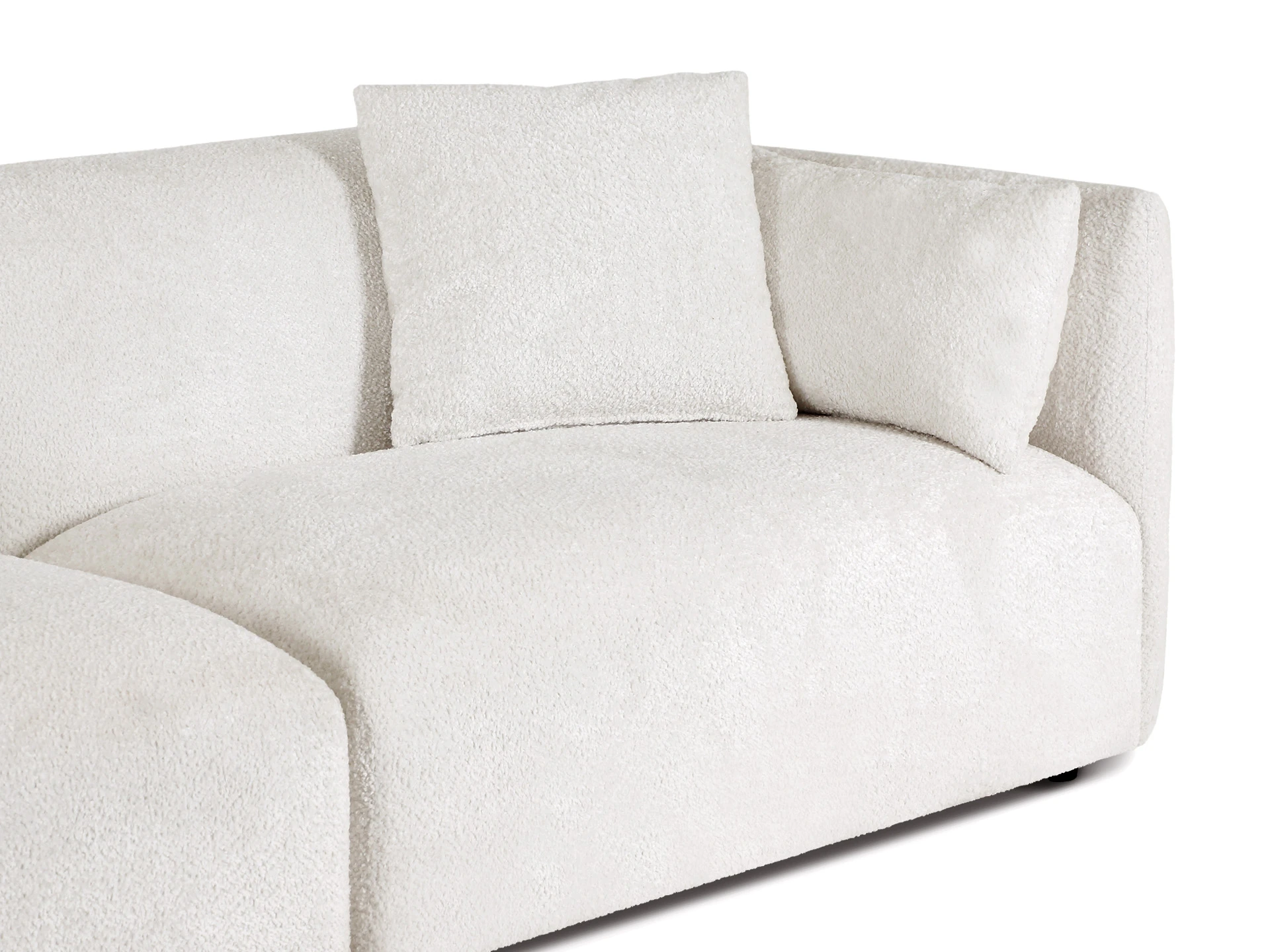 Материал обивки - искусственный мех, материал ножек - пластик. Наполнитель декоративных подушек - синтепух. У подушек для сидения наполнение - высоко эластичный поролон. Лицевой чехол декоративных подушек - съемный, на молнии.