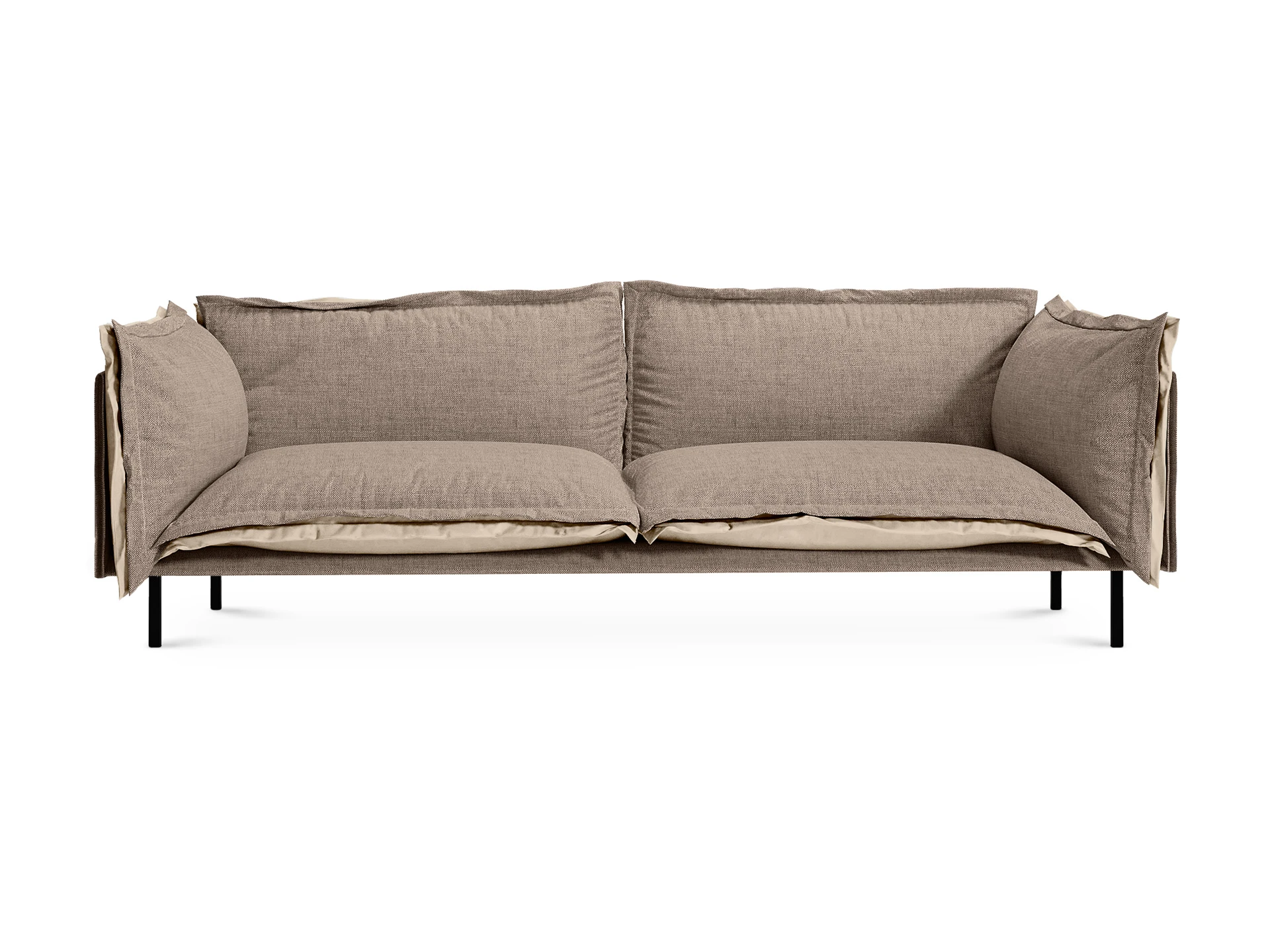 Металлические опоры дивана обеспечивают устойчивость, они окрашены черной матовой эмалью. А также снабжены пластиковыми подпятниками и сохраняют напольное покрытие от царапин.