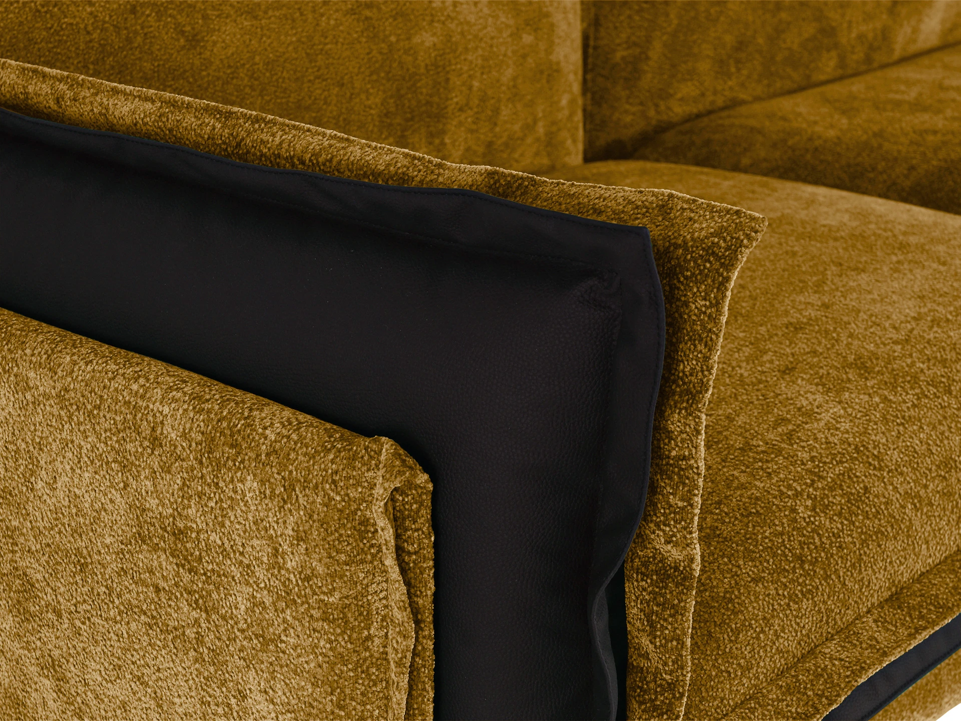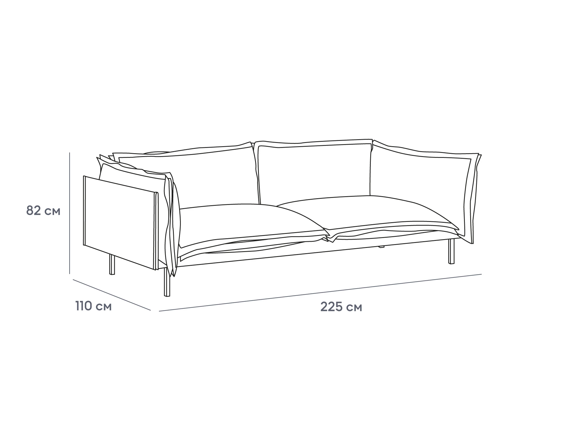 Металлические опоры дивана обеспечивают устойчивость, они окрашены черной матовой эмалью. А также снабжены пластиковыми подпятниками и сохраняют напольное покрытие от царапин.