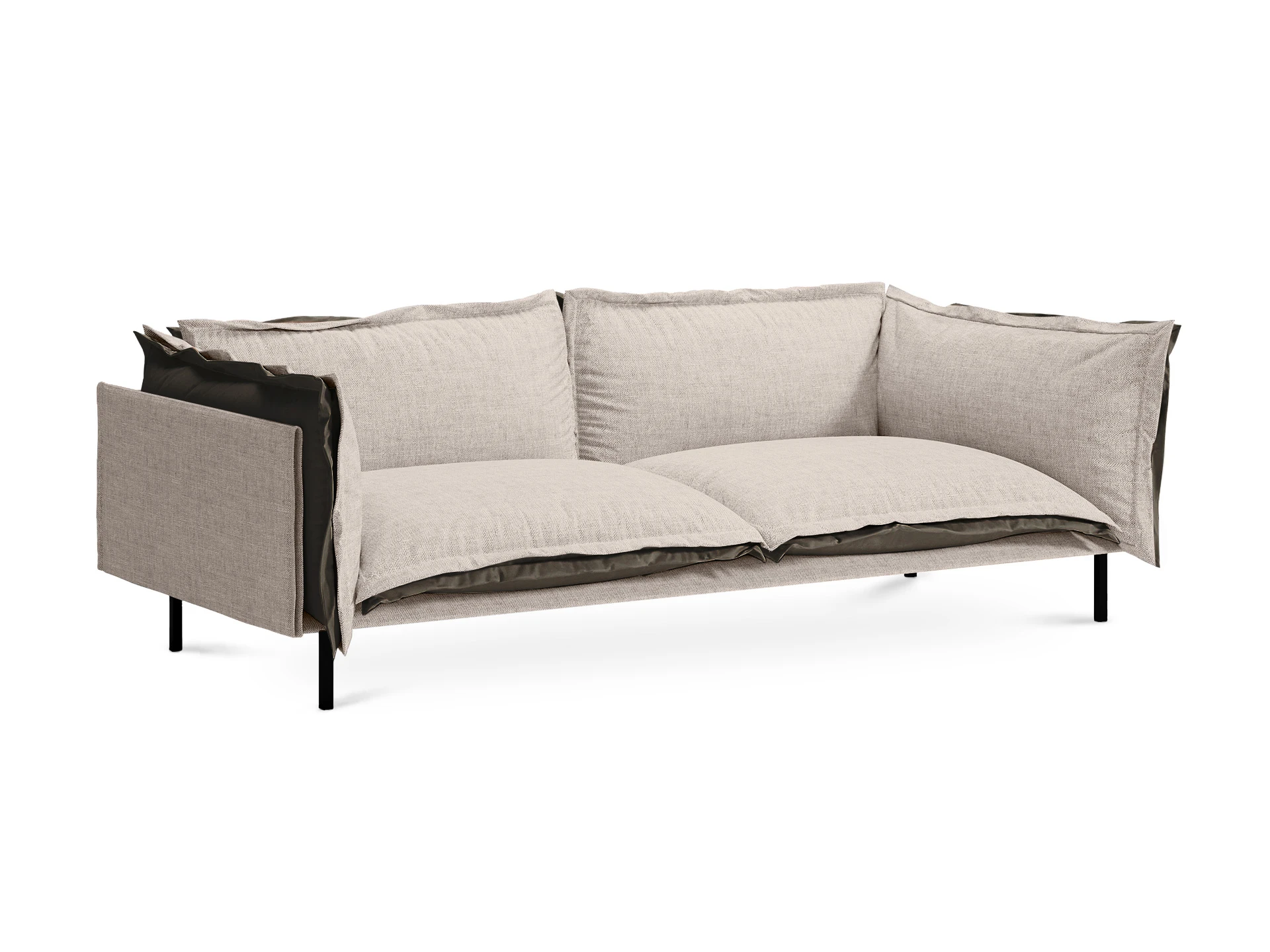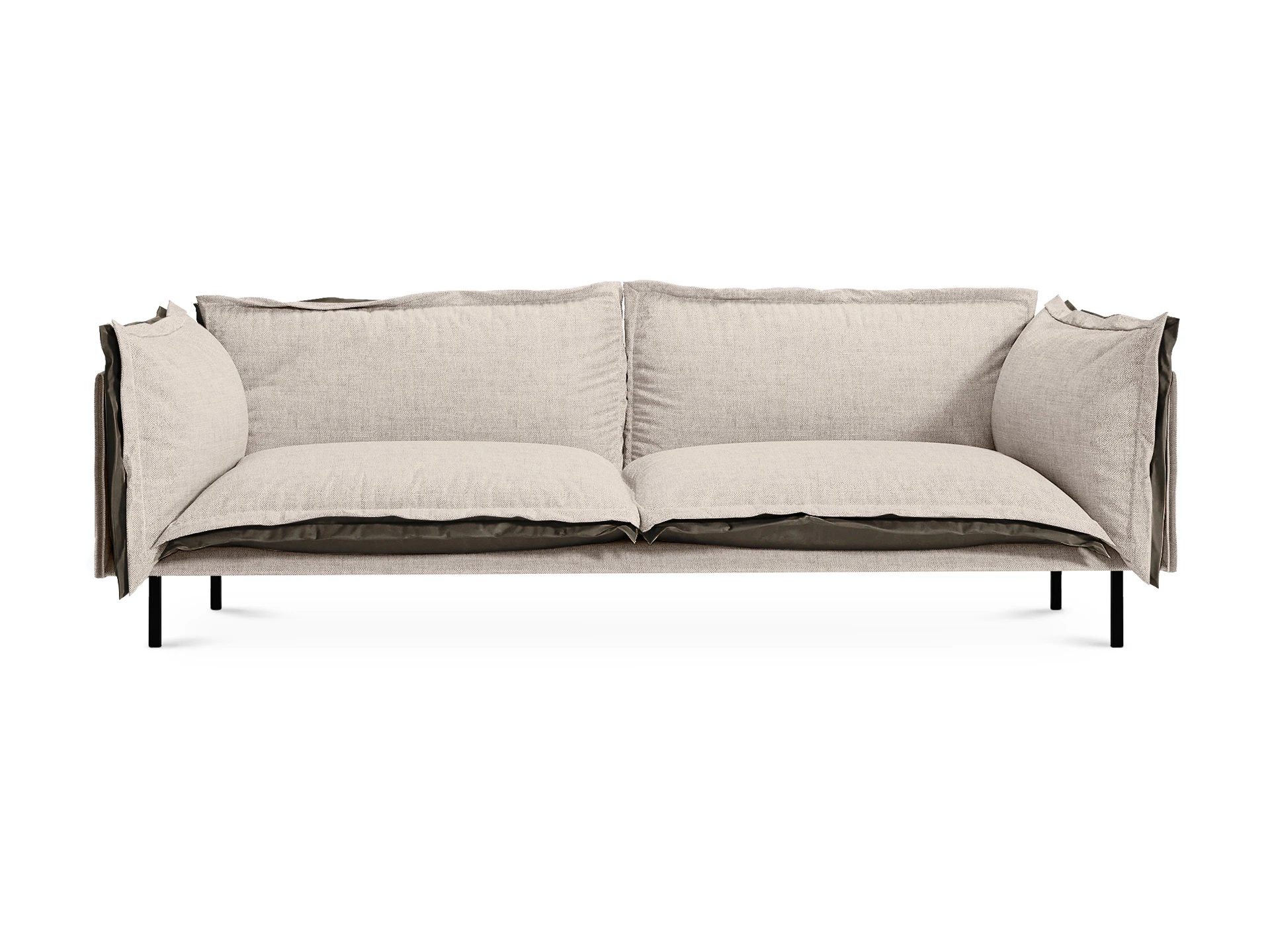 Металлические опоры дивана обеспечивают устойчивость, они окрашены черной матовой эмалью. А также снабжены пластиковыми подпятниками и сохраняют напольное покрытие от царапин.