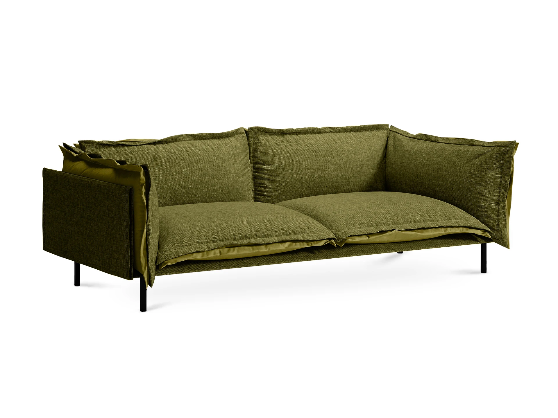 Металлические опоры дивана обеспечивают устойчивость, они окрашены черной матовой эмалью. А также снабжены пластиковыми подпятниками и сохраняют напольное покрытие от царапин.