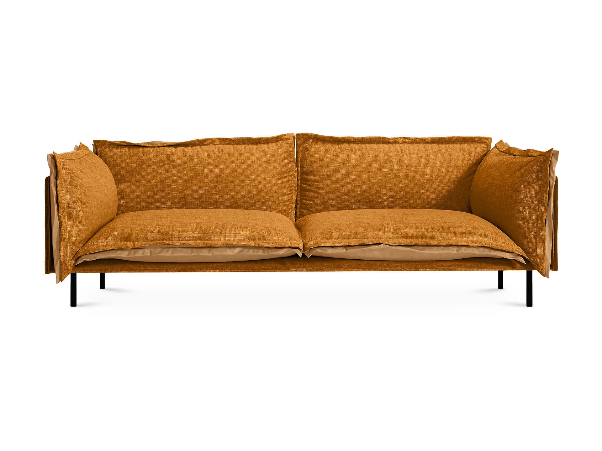 Металлические опоры дивана обеспечивают устойчивость, они окрашены черной матовой эмалью. А также снабжены пластиковыми подпятниками и сохраняют напольное покрытие от царапин.