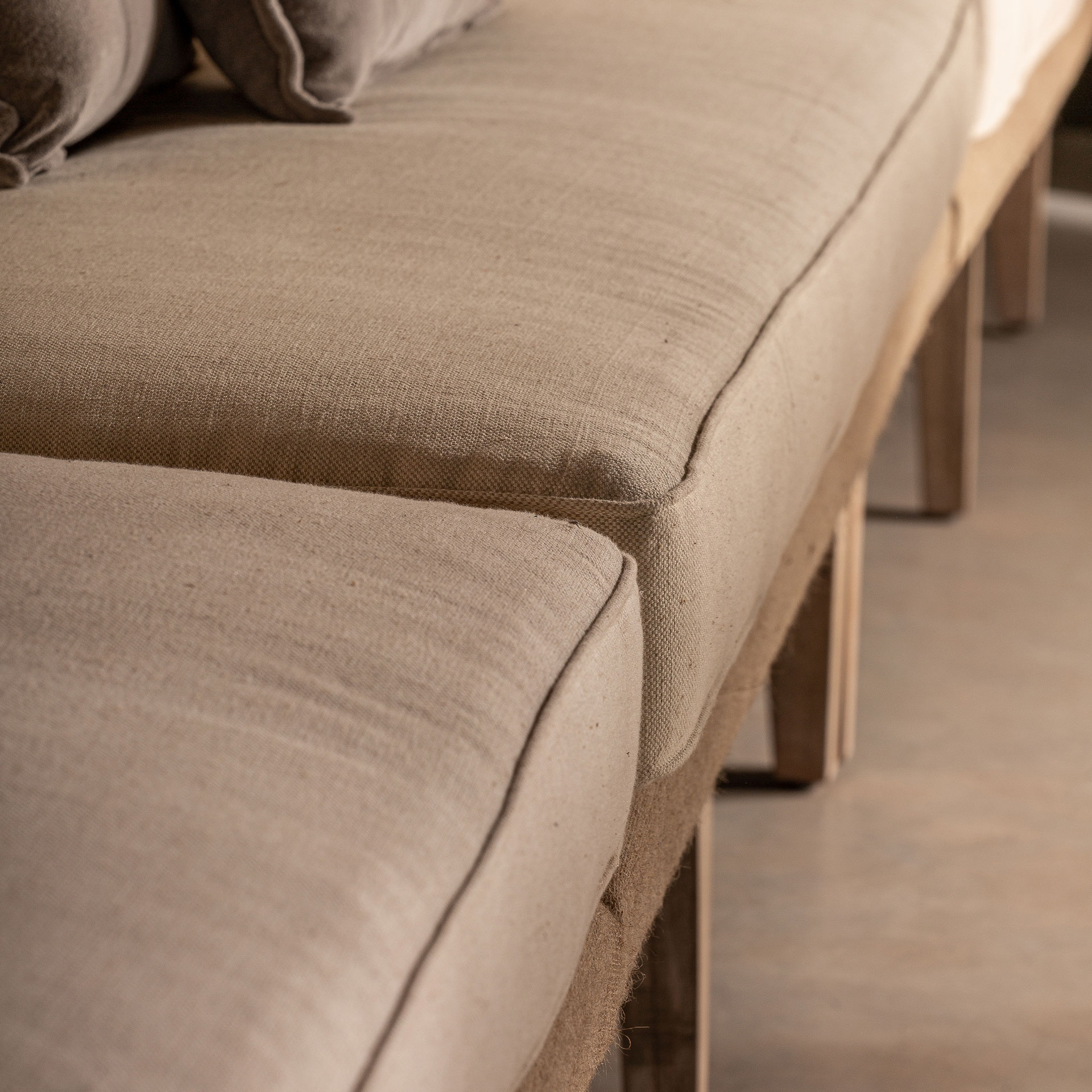 Диван барный retz, кремовый цвет, стиль прованс. Изготовлен из тикового дерева в сочетании с льном.
