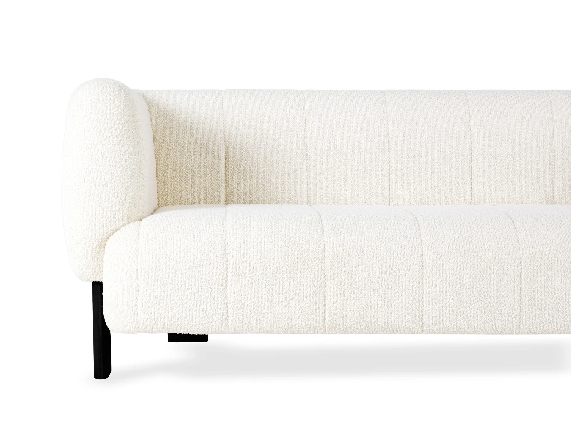 Диван Cassis — привлекательная минималистичная модель с объёмным силуэтом. Индивидуальность заключается в высоких подлокотниках, расположенных на одном уровне со спинкой. Такая конфигурация поддерживает большее ощущение комфорта, уединенности. Также поверхность дивана украшена отделочной вертикальной строчкой. «Стёжка» создает стильные геометрические акценты, добавляет плавности, округлых очертаний. И обеспечивает равномерное натяжение ткани по всему периметру. Это увеличивает износоустойчивость, срок службы материалов. Основательность и надежность кроется в каркасе из бруса хвойных пород. Сиденье состоит из пружин-змеек, нескольких слоев пенополиуретана и войлока. Материалы не деформируются, мгновенно восстанавливают форму. Обеспечат вам безмятежный отдых на идеальной поверхности. В меру упругой и мягкой. Опоры выполнены из бука. Упрощают уборку и поддерживают визуальную легкость конструкции. Диван Cassis легко адаптируется для различных пространств: как домашних, так и общественных. Вы можете выбрать цвет обивки и опор, создав индивидуальный дизайн, который гармонично впишется в ваш интерьер. Лицевой чехол изделия – простеганный, несъемный. Опоры выполнены из массива бука, представлены в трех цветах: светлый, черный, орех. Подпятники – пластиковые с фетровыми накладками.