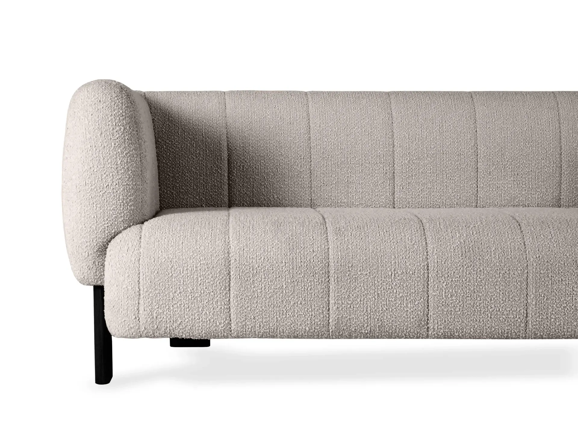 Диван Cassis — привлекательная минималистичная модель с объёмным силуэтом. Индивидуальность заключается в высоких подлокотниках, расположенных на одном уровне со спинкой. Такая конфигурация поддерживает большее ощущение комфорта, уединенности. Также поверхность дивана украшена отделочной вертикальной строчкой. «Стёжка» создает стильные геометрические акценты, добавляет плавности, округлых очертаний. И обеспечивает равномерное натяжение ткани по всему периметру. Это увеличивает износоустойчивость, срок службы материалов.