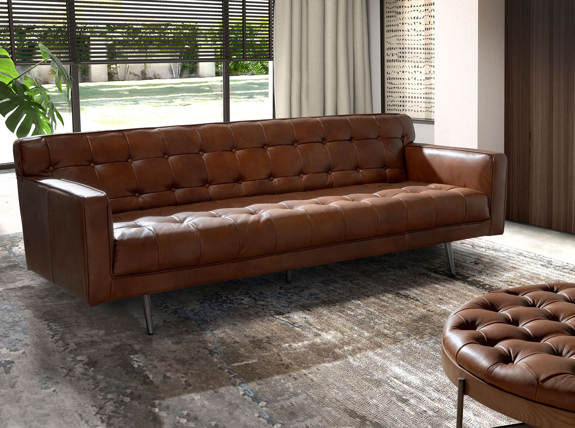 Диван Chester 3 местный современного дизайна, обитый темно-коричневой воловьей кожей. Благодаря своему стилю и ножкам из темной нержавеющей стали этот диван привнесет нотку авангарда и элегантности, которую вы ищете в своем доме.