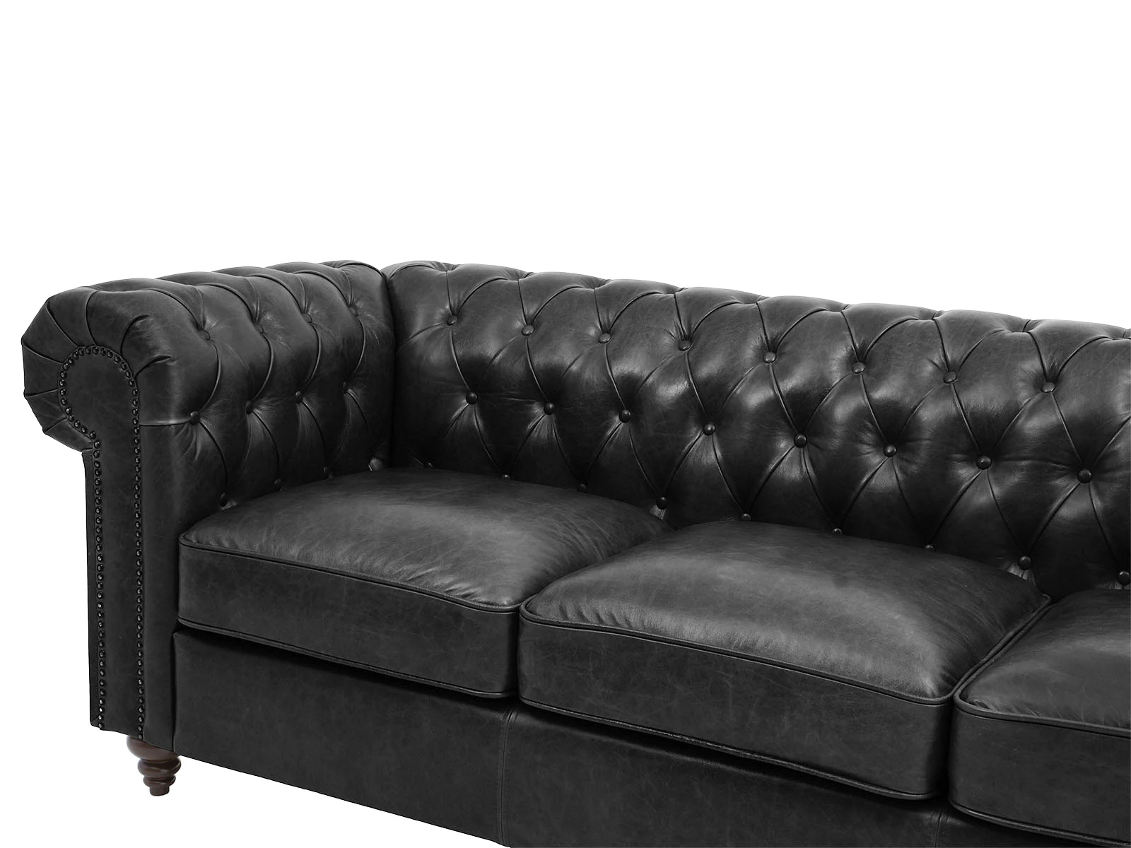 Линейка диванов «Chester Classic» представлена классическими моделями в английском стиле на ножках. Изделие может быть выполнено в натуральной коже или в другой обивке на ваш выбор. Отличительная черта диванов «Chester Classic» — спинка и подлокотники находятся на одном уровне и имеют одинаковую толщину. Благодаря наклону мягкой спинки и независимому пружинному блоку в основании сиденья, «Chester Classic» считается диваном повышенной комфортности. Подлокотники имеют форму свитков. Подобные элементы часто встречаются в архитектуре барокко. Они привносят ощущение шика и королевского стиля. Ножки дивана выполнены из дерева, имеют форму завитка, их цвет может быть коричневым или чёрным — на ваш выбор.||Представленная на фото модель — трёхместный кожаный диван. Натуральная качественная кожа, используемая для этой модели, имеет роскошную фактуру, не требует специального ухода, «дышит» - воздух и влага проходят сквозь неё, создавая циркуляцию. Долговечна, вызывает приятные тактильные ощущения, а эффект пулл-ап - кожа светлеет в местах натяжения - придаёт винтажный вид . В основании дивана - прочный каркас из бруса хвойных пород, мягкие комфортные подушки. Глубокая каретная стяжка в технике «капитоне» на спинке и подлокотниках. Которые украшены декоративными гвоздиками под состаренную бронзу, они придают изделию выразительный и аутентичный вид. «Chester Classic» - это культовый дизайн и респектабельность.
