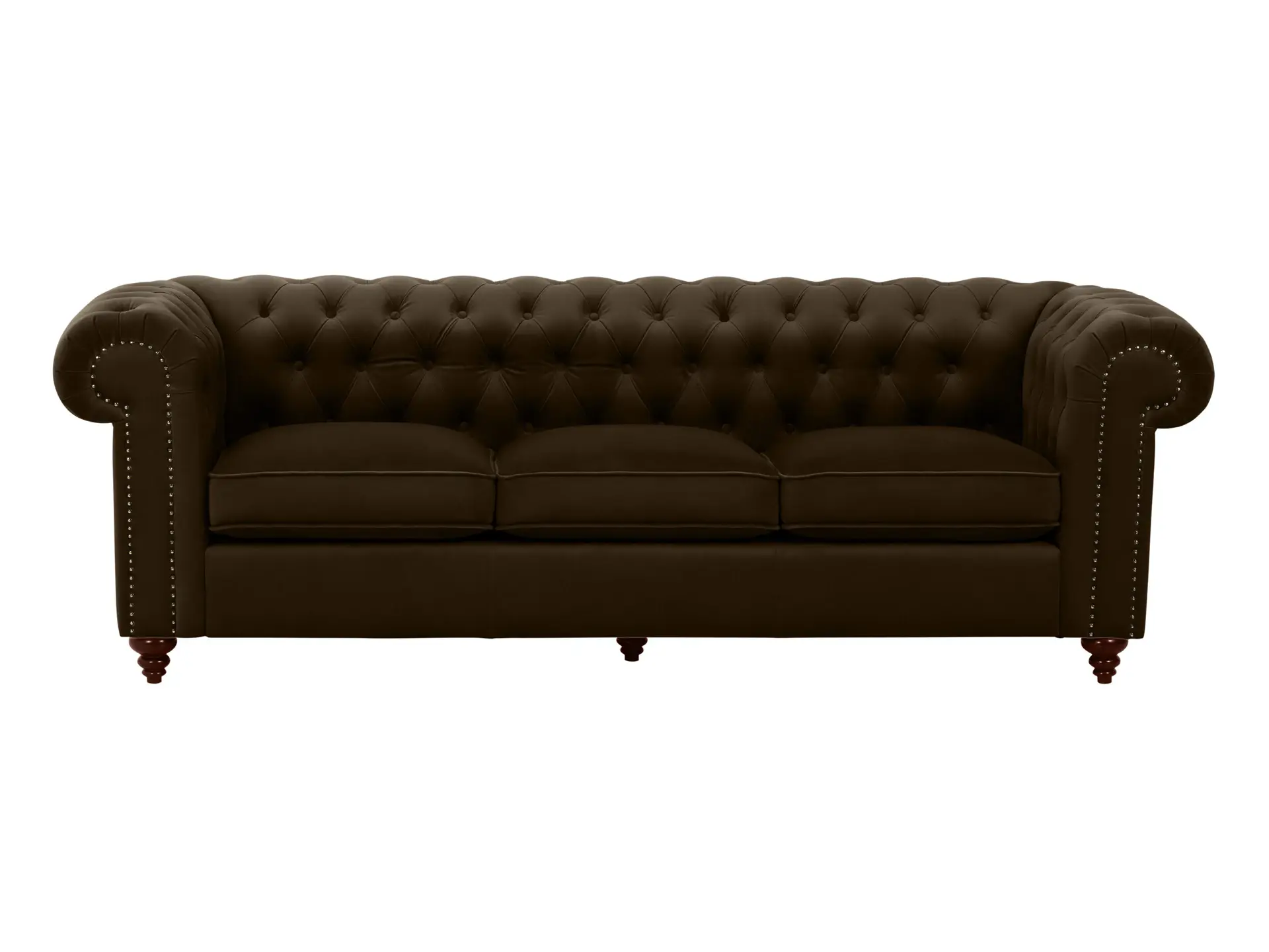 Линейка диванов «Chester Classic» представлена классическими моделями в английском стиле на ножках. Изделие может быть выполнено в натуральной коже или в другой обивке на ваш выбор. Отличительная черта диванов «Chester Classic» — спинка и подлокотники находятся на одном уровне и имеют одинаковую толщину. Благодаря наклону мягкой спинки и независимому пружинному блоку в основании подушек сиденья, «Chester Classic» считается диваном повышенной комфортности. Подлокотники имеют форму свитков. Подобные элементы часто встречаются в архитектуре барокко. Они привносят экспрессию, ощущение королевского стиля. Ножки дивана выполнены из дерева, имеют форму завитка, их цвет может быть коричневым или чёрным — на ваш выбор.||Представленная модель - трехместный диван. Прочный каркас из деревянного бруса, мягкие подушки, наполнитель — пениполиуретан и синтепон. «Chester Classic» превосходно будет смотреться в любой обстановке, гармонично сочетается с фактурой дерева, камня, меха, песка. Выверенное сочетание мягкости и жесткости, комфорт. Яркий гранатовый цвет, как на фото, или шоколадный ликер, ирис, цвет серебра, соснового леса - изделие можно заказать в любом цвете и материале. Диван можно поставить вдоль стены или в центре помещения — он одинаково круто смотрится со всех сторон.