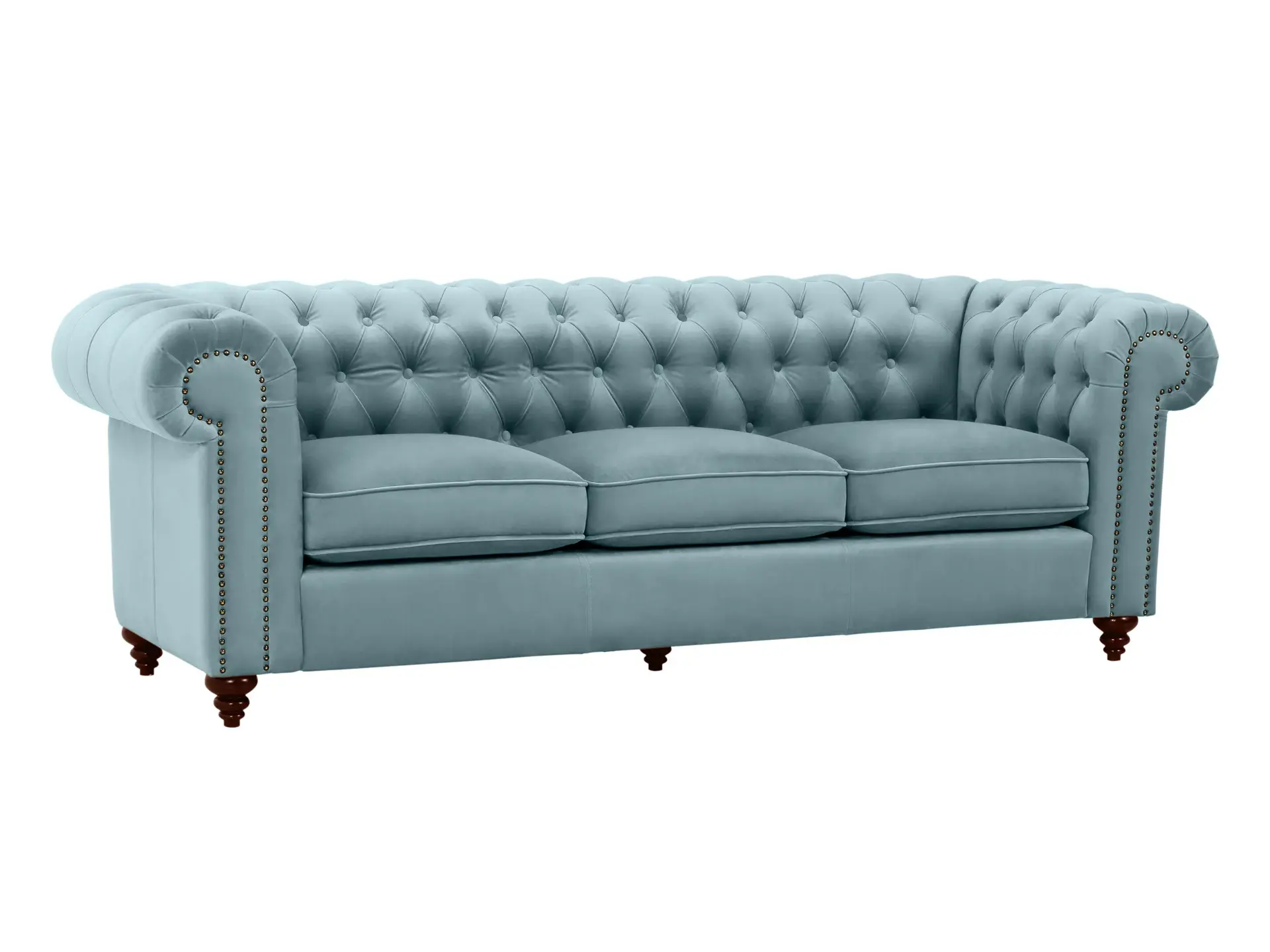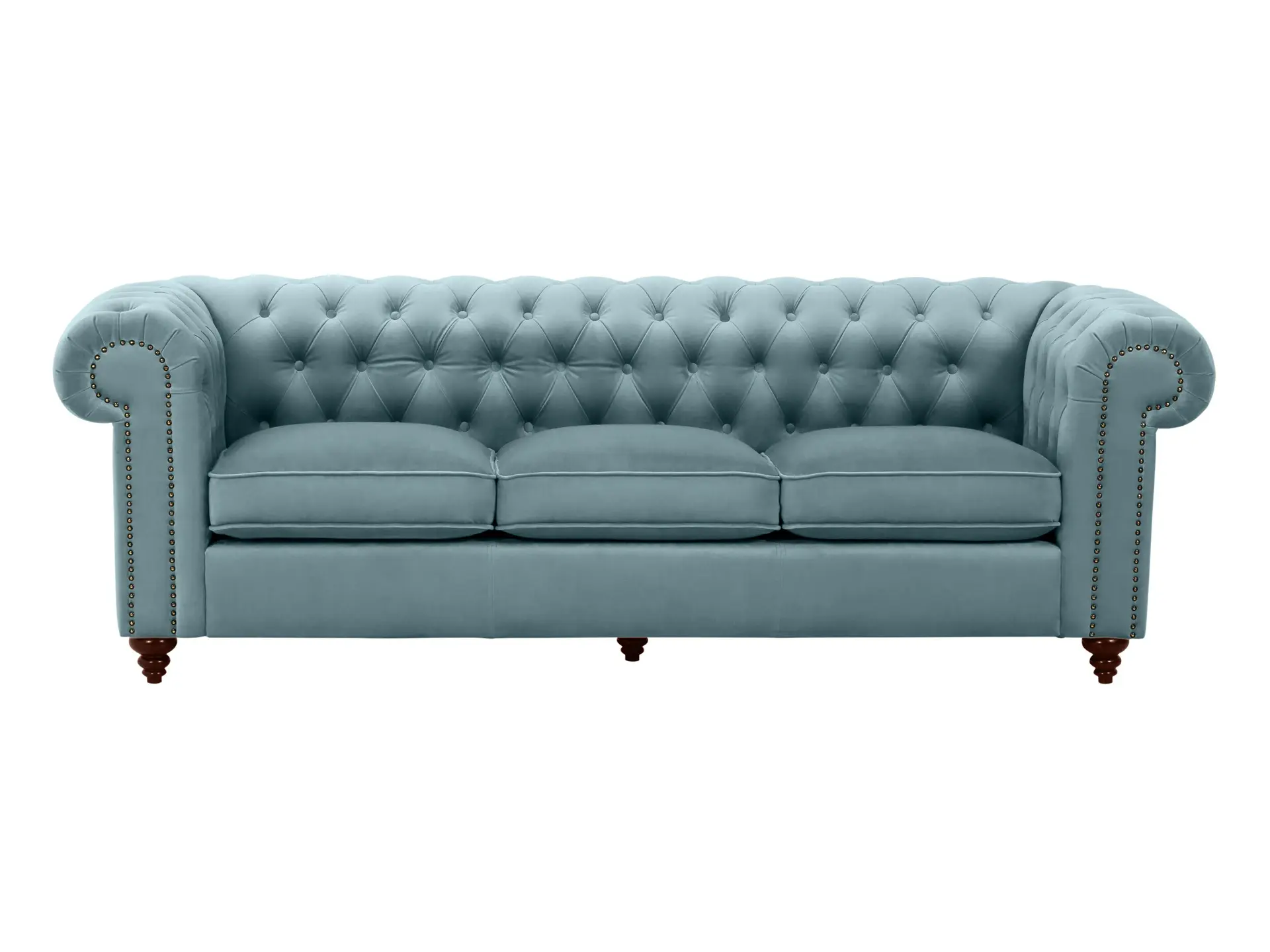 Линейка диванов «Chester Classic» представлена классическими моделями в английском стиле на ножках. Изделие может быть выполнено в натуральной коже или в другой обивке на ваш выбор. Отличительная черта диванов «Chester Classic» — спинка и подлокотники находятся на одном уровне и имеют одинаковую толщину. Благодаря наклону мягкой спинки и независимому пружинному блоку в основании подушек сиденья, «Chester Classic» считается диваном повышенной комфортности. Подлокотники имеют форму свитков. Подобные элементы часто встречаются в архитектуре барокко. Они привносят экспрессию, ощущение королевского стиля. Ножки дивана выполнены из дерева, имеют форму завитка, их цвет может быть коричневым или чёрным — на ваш выбор.||Представленная модель - трехместный диван. Прочный каркас из деревянного бруса, мягкие подушки, наполнитель — пениполиуретан и синтепон. «Chester Classic» превосходно будет смотреться в любой обстановке, гармонично сочетается с фактурой дерева, камня, меха, песка. Выверенное сочетание мягкости и жесткости, комфорт. Яркий гранатовый цвет, как на фото, или шоколадный ликер, ирис, цвет серебра, соснового леса - изделие можно заказать в любом цвете и материале. Диван можно поставить вдоль стены или в центре помещения — он одинаково круто смотрится со всех сторон.