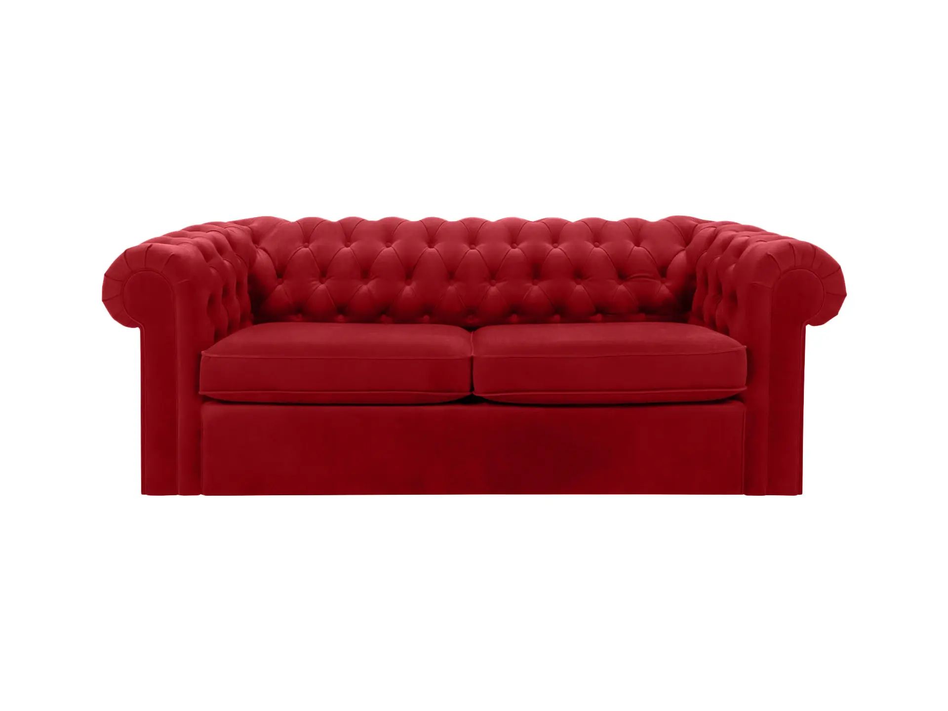 Линейка «Chesterfield» - диваны в английском стиле на опорах, которые закрыты царгами. Опоры имеют мягкие подпятники, что позволяет не портить напольное покрытие. Диван можно выбрать как с механизмом трансформации «Sedaflex» для ежедневного сна, так и без него. Изделие может быть выполнено в натуральной коже или в другой обивке на ваш выбор.||Данная модель - классический двухместный диван. Прочный каркас из деревянного бруса, мягкие подушки. Материал обивки – полиэстер с добавлением нейлона. Это сочетание делает поверхность дивана эластичной, устойчивой к истиранию и образованию закатанных ворсинок. Ромбовидная стяжка - элемент изысканного декора и техника, которая позволяет равномерно распределить наполнитель. Один уровень спинки и подлокотников делает диван эргономичным для людей любого роста. Форма свитка главных элементов венчает диван, что придаёт ему исторический дух. «Chesterfield» в современной интерпретации прекрасно можно сочетать с любым стилем. Контекст интерьера может сделать его брутальным, строгим или утончённым.
