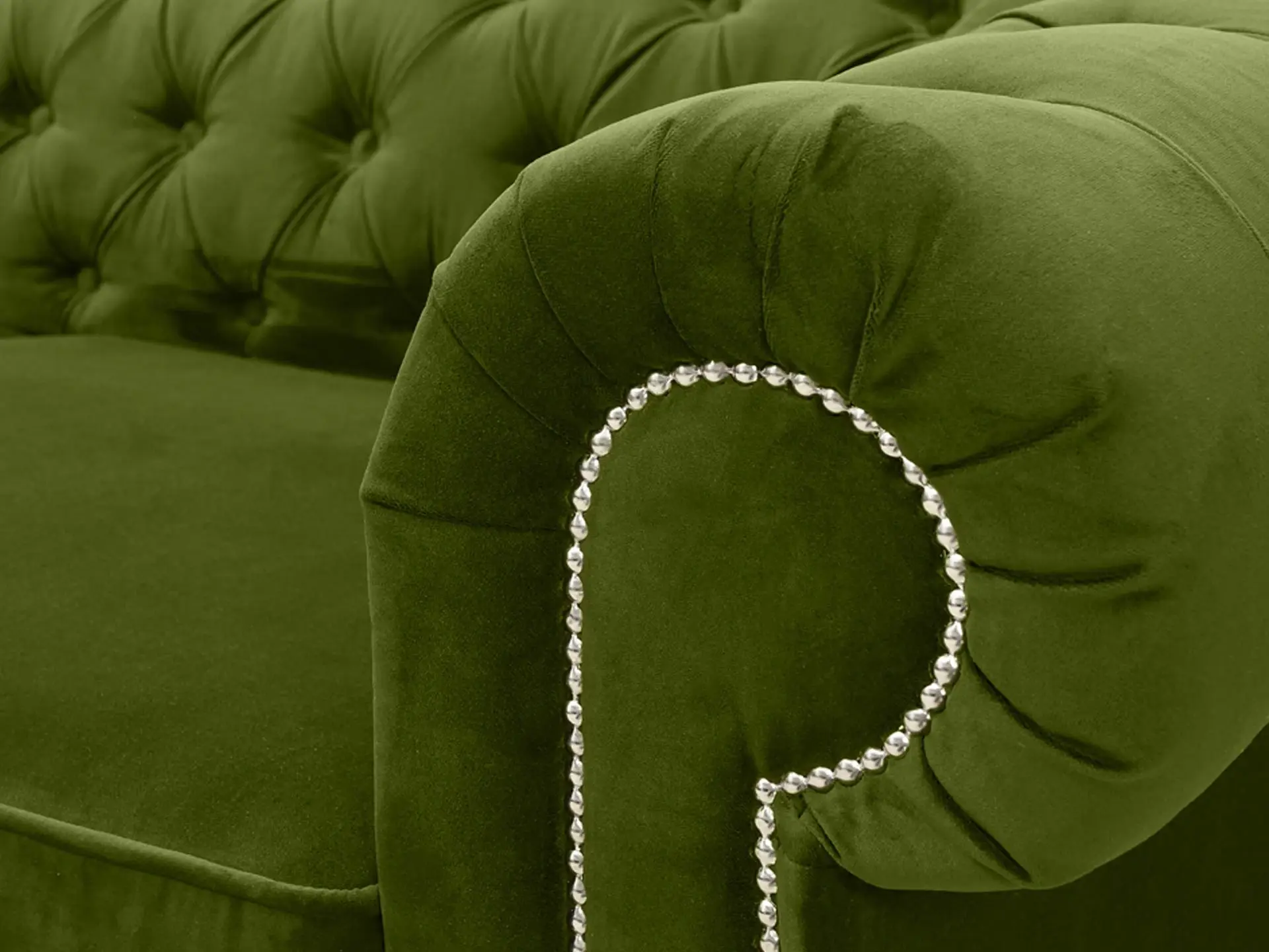 Линейка «Chesterfield» - диваны в английском стиле на опорах, которые закрыты царгами. Опоры имеют войлочные подпятники, что позволяет не портить напольное покрытие. Диван можно выбрать как с механизмом трансформации «Sedaflex» для ежедневного сна, так и без него. Изделие может быть выполнено в натуральной коже или в другой обивке на ваш выбор.||Представленная модель - классический двухместный диван с механизмом трансформации «Sedaflex». Размер спального места 1840х1330 мм. Основание спального места — 9 ортопедических лат. В комплекте имеется матрас из пенополиуретана высотой 90 мм. Нагрузка на одно спальное место составляет 110 кг.||«Chesterfield» - сочетание прямых и плавных линий, выверенные пропорции. Прочный каркас из деревянного бруса, мягкие подушки. Материал обивки – полиэстер с добавлением нейлона. Это сочетание делает поверхность дивана эластичной, устойчивой к истиранию и образованию закатанных ворсинок. Ромбовидная стяжка «капитоне» - элемент изысканного декора и техника, которая позволяет равномерно распределить наполнитель. Один уровень спинки и подлокотников, которые дополнительно украшены молдингами, делает диван эргономичным для людей любого роста. Форма свитка главных элементов венчает диван, что придаёт ему исторический дух. «Chesterfield» в современной интерпретации прекрасно можно сочетать с любым стилем. Контекст интерьера может сделать его брутальным, строгим или утончённым, изысканным.