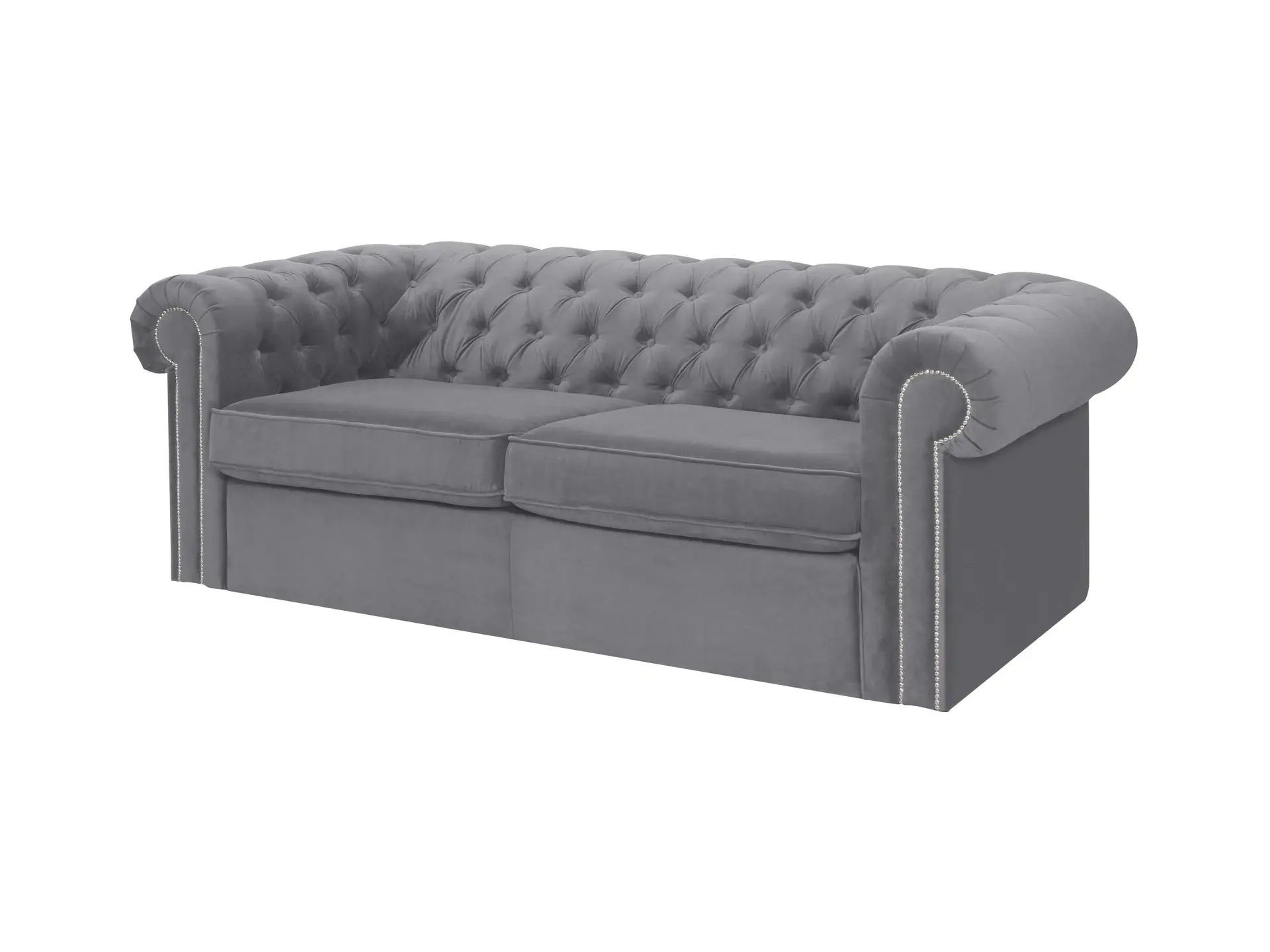 Линейка «Chesterfield» - диваны в английском стиле на опорах, которые закрыты царгами. Опоры имеют войлочные подпятники, что позволяет не портить напольное покрытие. Диван можно выбрать как с механизмом трансформации «Sedaflex» для ежедневного сна, так и без него. Изделие может быть выполнено в натуральной коже или в другой обивке на ваш выбор.||Представленная модель - классический двухместный диван с механизмом трансформации «Sedaflex». Размер спального места 1840х1330 мм. Основание спального места — 9 ортопедических лат. В комплекте имеется матрас из пенополиуретана высотой 90 мм. Нагрузка на одно спальное место составляет 110 кг.||«Chesterfield» - сочетание прямых и плавных линий, выверенные пропорции. Прочный каркас из деревянного бруса, мягкие подушки. Материал обивки – полиэстер с добавлением нейлона. Это сочетание делает поверхность дивана эластичной, устойчивой к истиранию и образованию закатанных ворсинок. Ромбовидная стяжка «капитоне» - элемент изысканного декора и техника, которая позволяет равномерно распределить наполнитель. Один уровень спинки и подлокотников, которые дополнительно украшены молдингами, делает диван эргономичным для людей любого роста. Форма свитка главных элементов венчает диван, что придаёт ему исторический дух. «Chesterfield» в современной интерпретации прекрасно можно сочетать с любым стилем. Контекст интерьера может сделать его брутальным, строгим или утончённым, изысканным.