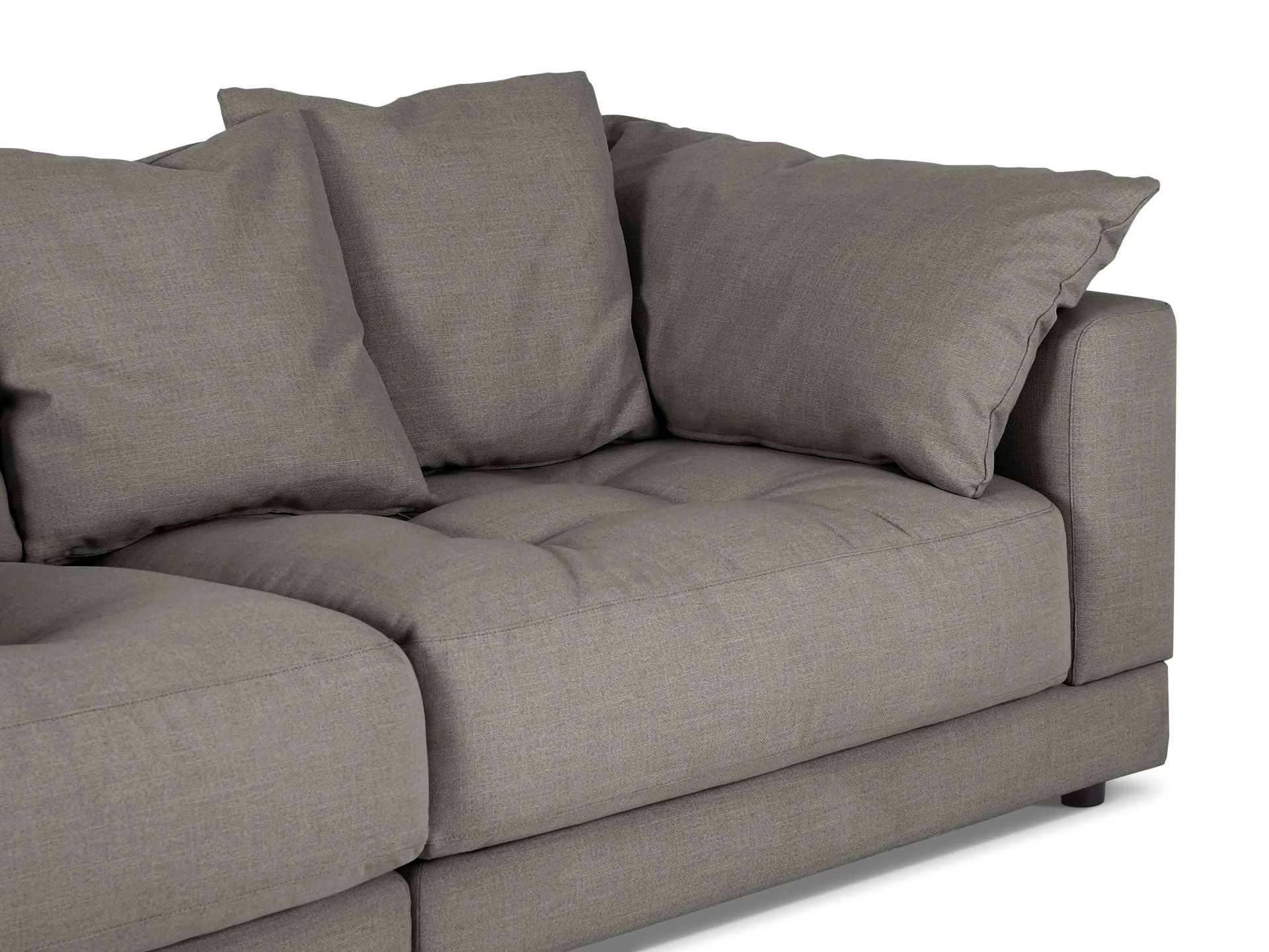 Диван «Cоssato» - модульный каркасный диван, состоящий из левого и правого модуля. Подлокотники не съемные, устанавленны и зафиксированны на основании дивана. Диван установлен на опору пластиковую –h 49мм.