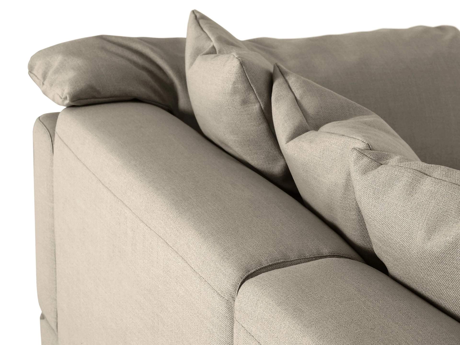Диван дополнительно укомплектован декоративными подушками и подушками подлокотниками, наполнитель: пух-перо.