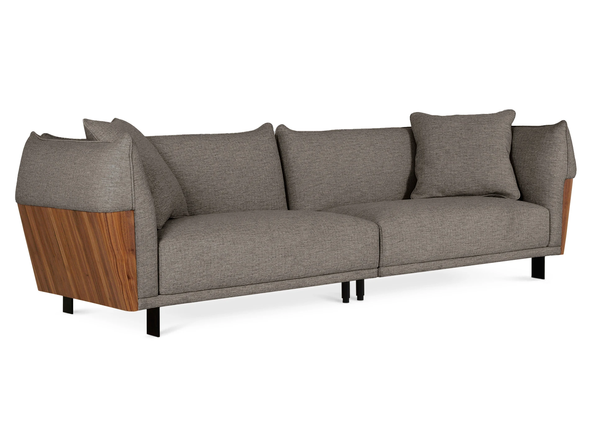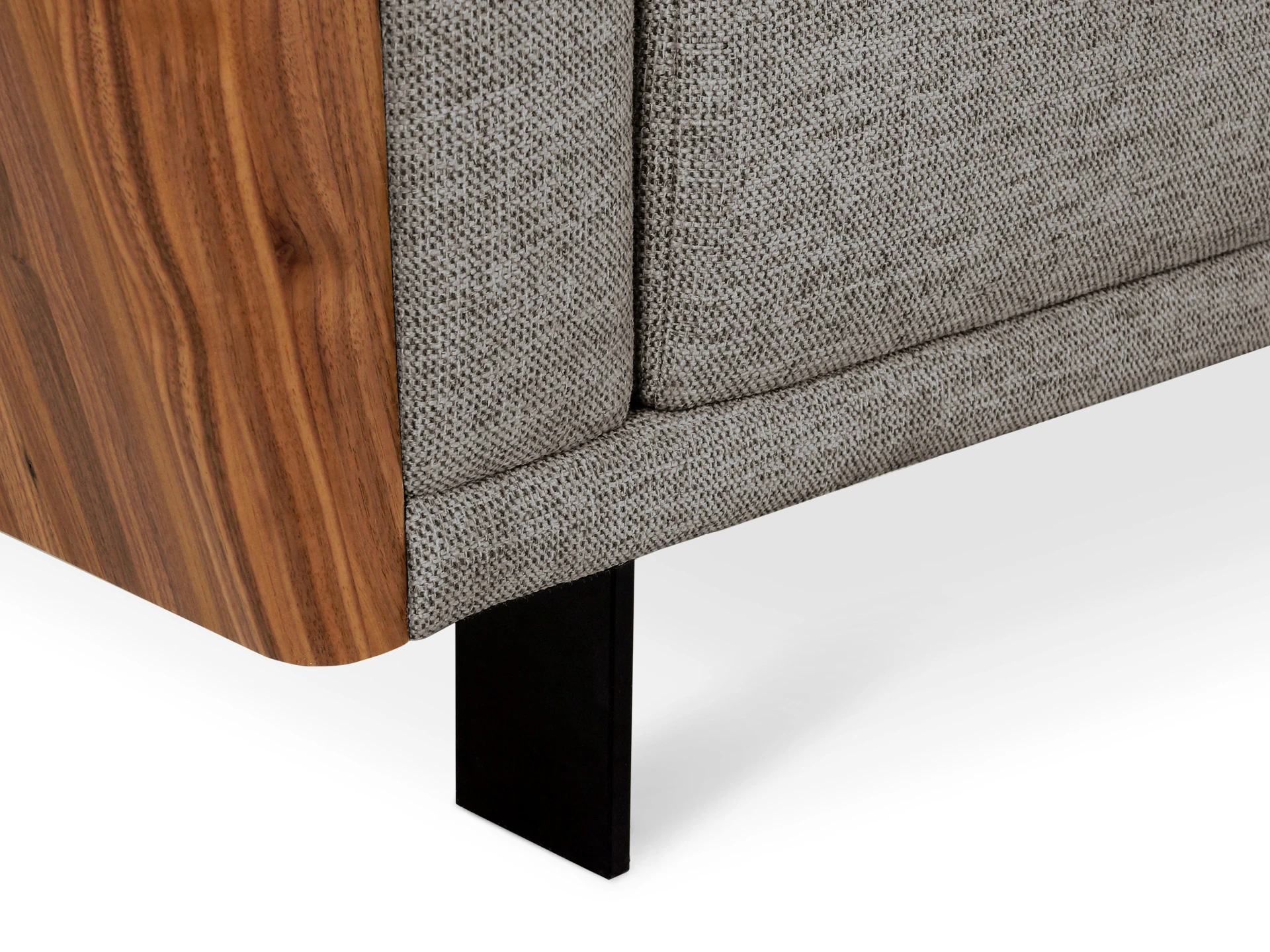 В основании дивана – четыре металлические Т-образные опоры матового черного цвета по углам, и четыре цилиндрические регулируемые опоры по центру. На торцы опор установлены пластиковые подпятники.