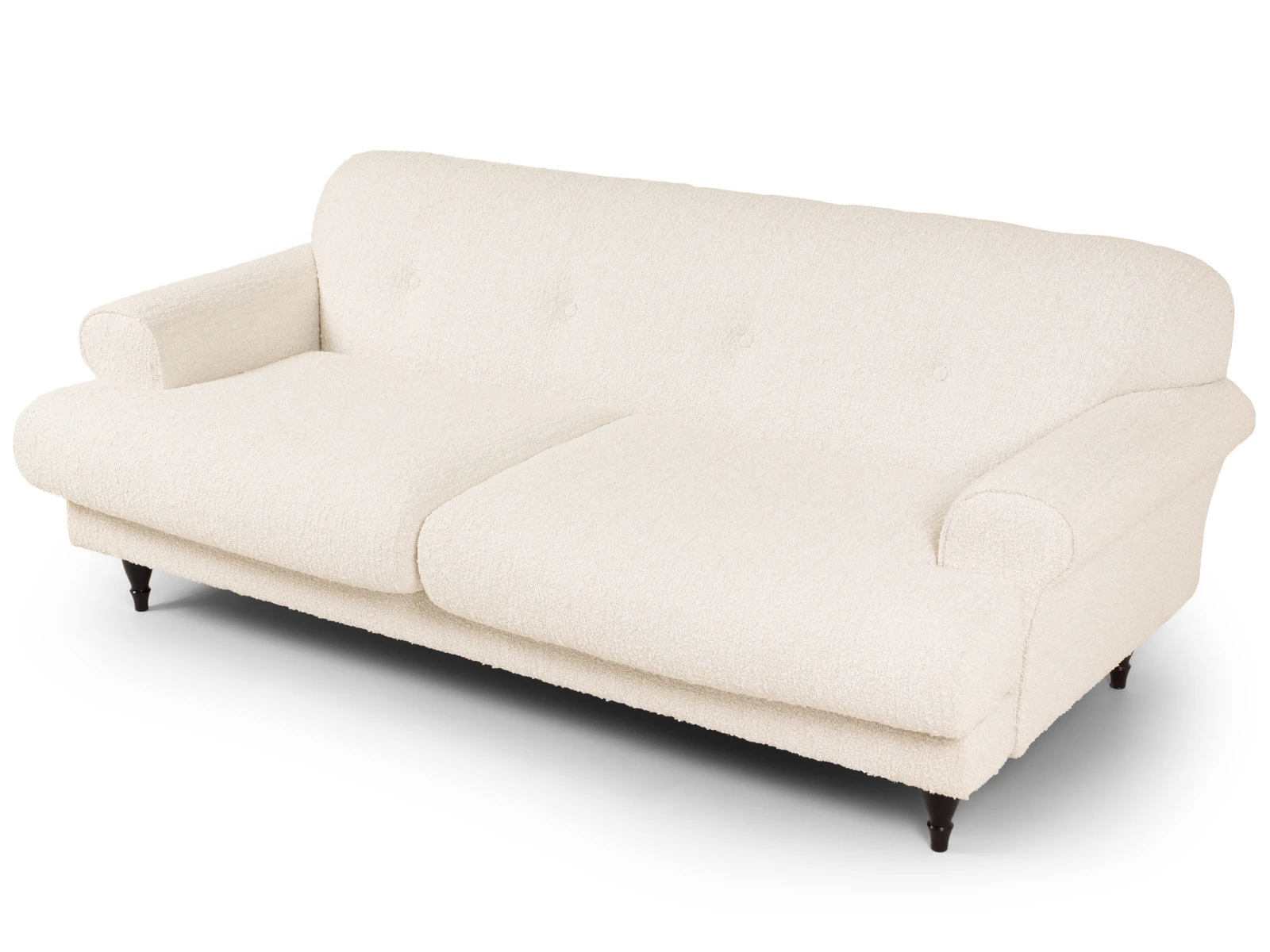 Трехместный диван Italia на деревянных ножках - модель классического европейского дизайна. Прямоугольное сиденье, образованное двумя подушками, обеспечивает комфортную посадку. Спинка с закругленными краями делает изделие гармоничным и плавным. Деревянные круглые ножки с фигурной обработкой создают ощущение невесомости и легкости, диван словно «парит» в пространстве. Невысокие подлокотники закруглены наружу, изюминку их формы по достоинству можно оценить при отдыхе лежа. Спинка украшена пуговицами стяжек – черта стилистики ретро.|Сочетание в каркасе деревянного бруса еловых пород с МДФ обеспечивает прочность и основательность. В меру мягкие, эластичные и износоустойчивые наполнители спинки и подушек сиденья – пенополиуретан и синтепон отвечают за качество вашего отдыха в любом положении. Широкий выбор материала обивки по цвету и фактуре. Italia – лаконичный диван с особенной эстетикой. Недаром он носит название страны, которая ассоциируется с искусством, культурой и утонченностью. В зависимости от стиля интерьера и декора диван Italia может выглядеть романтично, строго или изысканно.